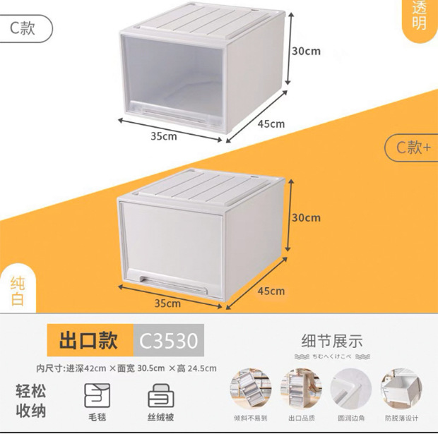 抽屉衣柜收纳盒 45-3530; (白透一个装)透明抽屉