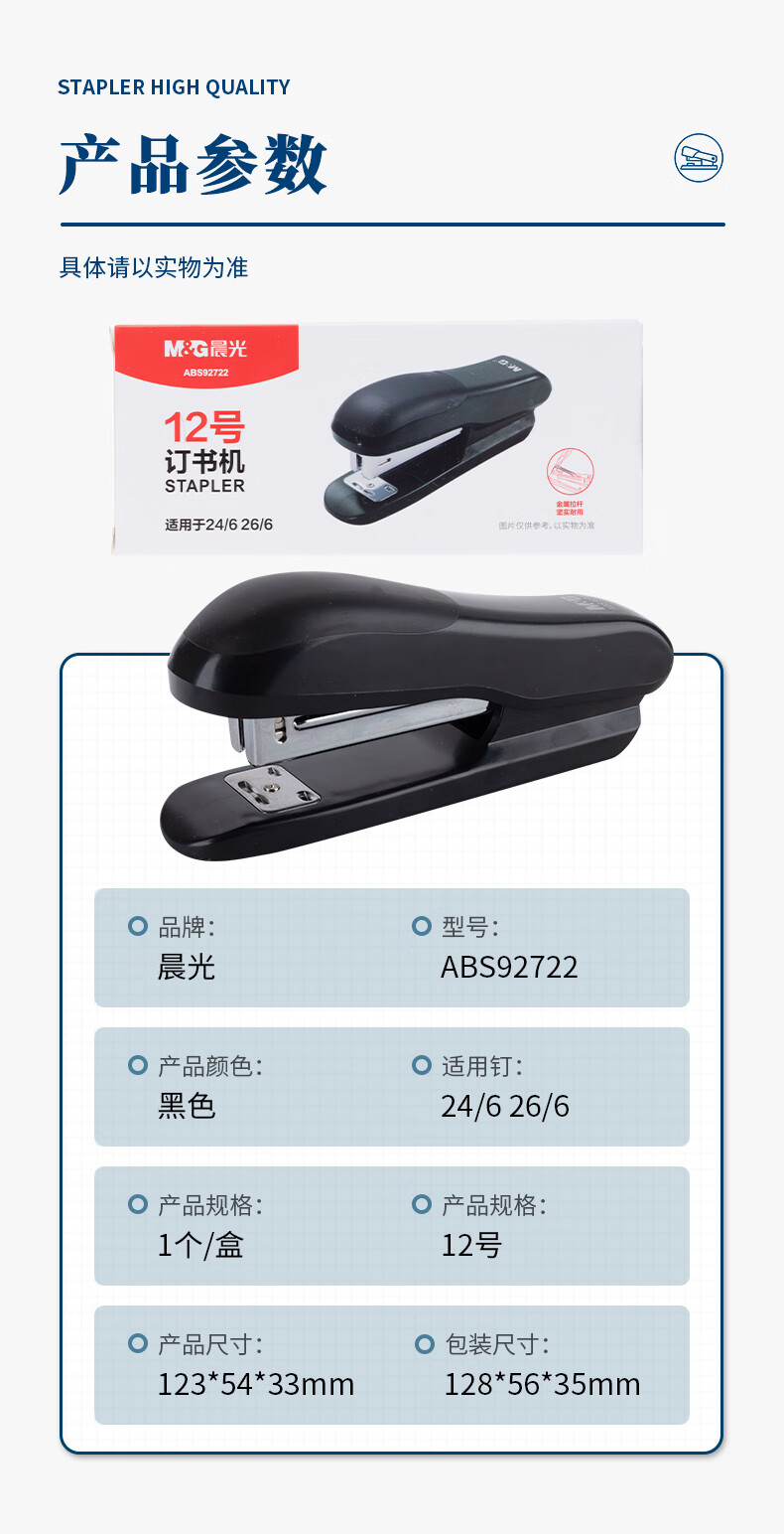 晨光订书机12号(黑)ABS92722(1个)