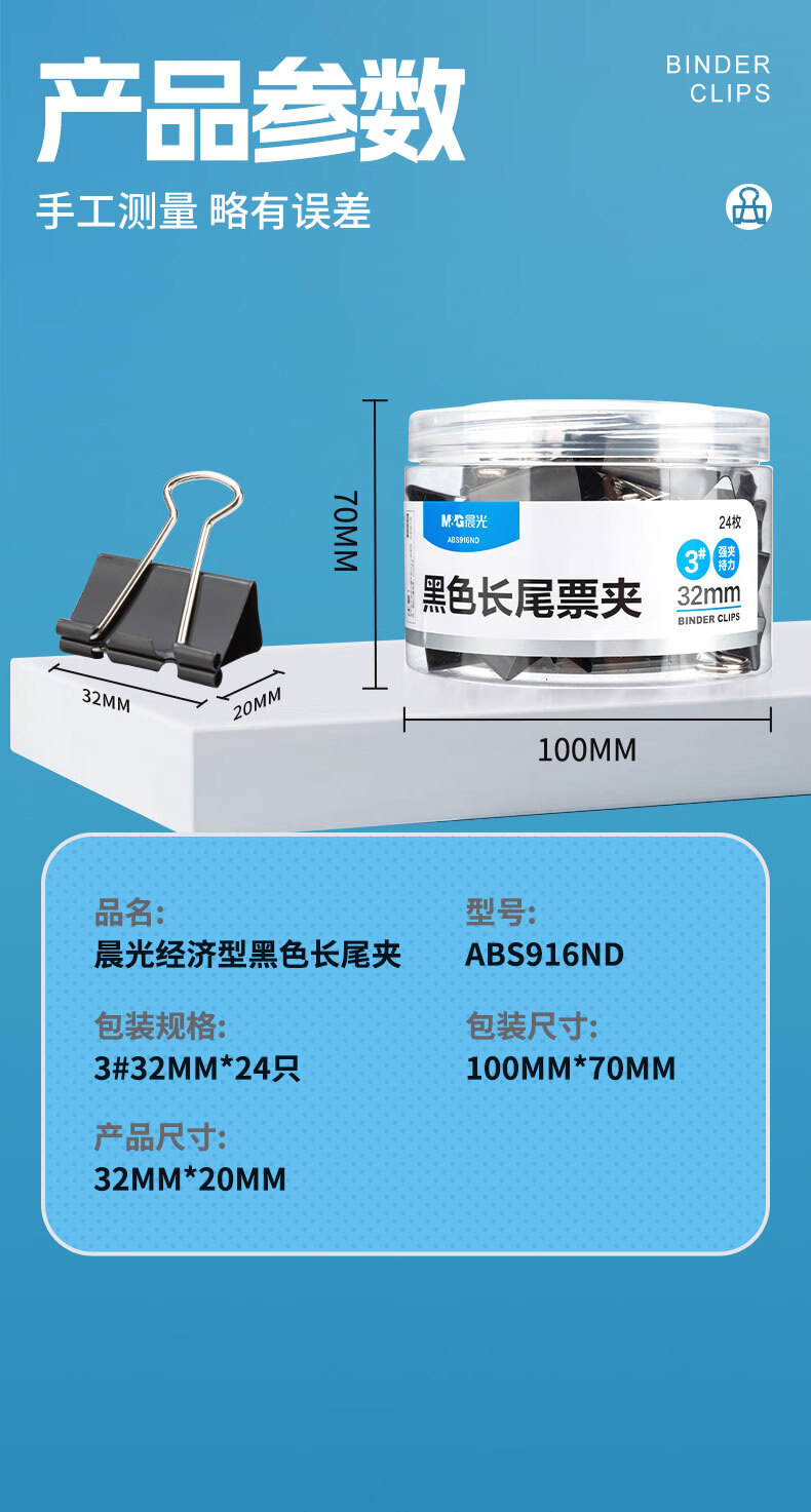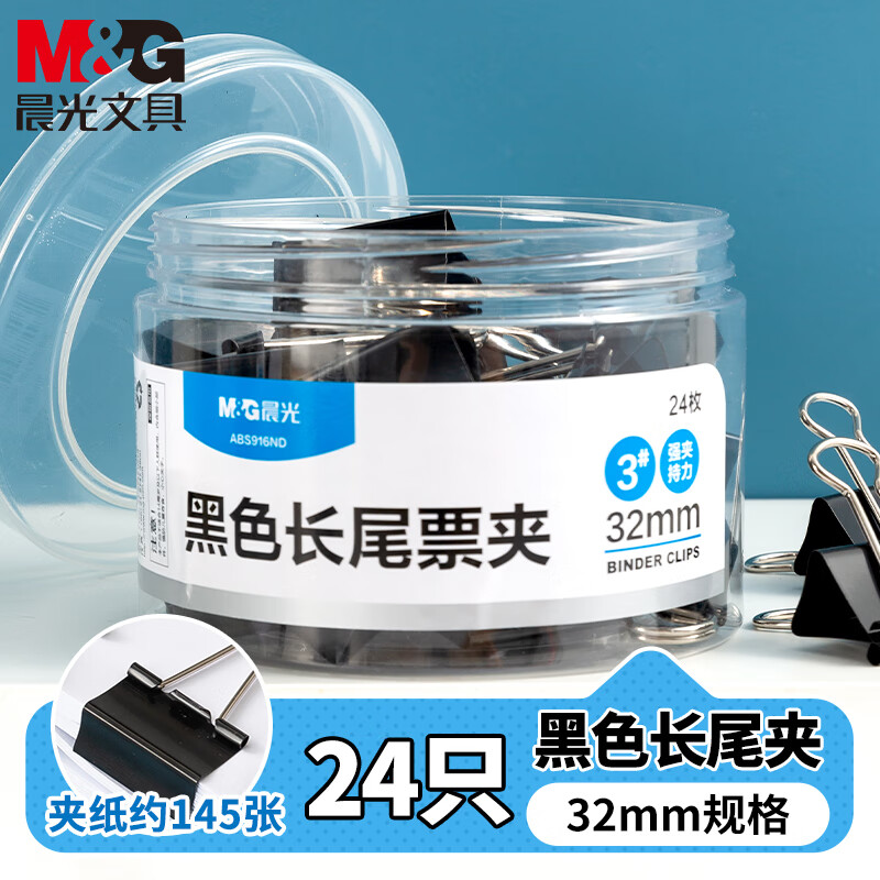 晨光长尾夹Eplus32mm(筒装)黑色ABS92734 3#(1筒(24个))