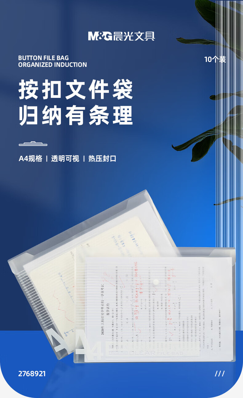 晨光纽扣袋透明A4-ADM95074(10个)