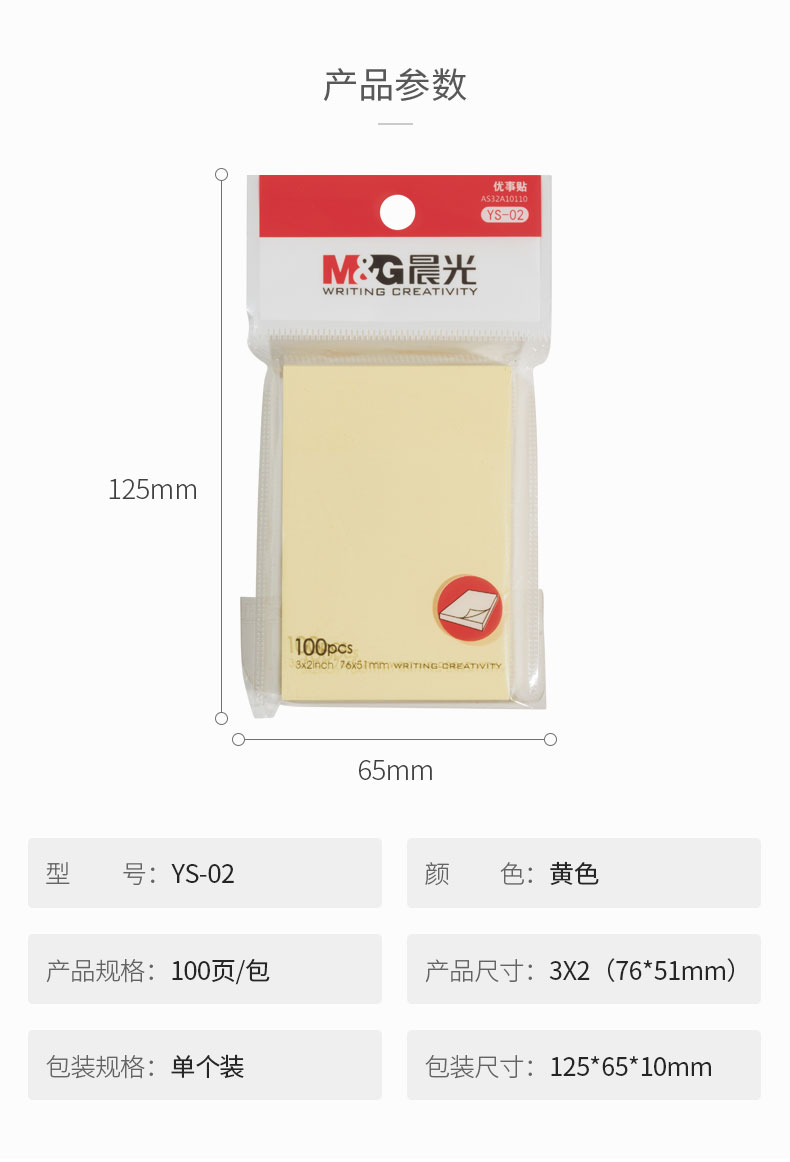 晨光3X2自粘便条纸100(经典办公)YS-02 1包