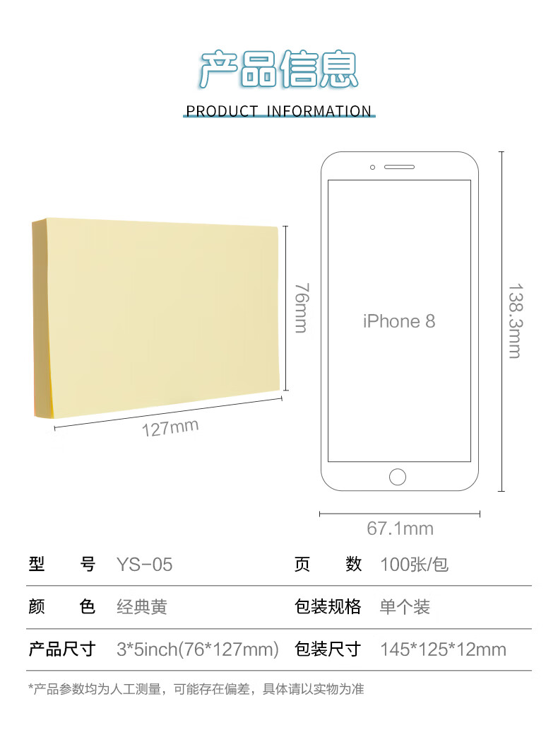 晨光3X5自粘便条纸100(经典办公)YS-05 1包