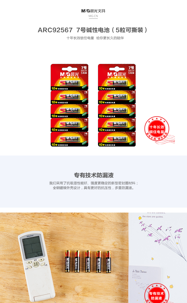 晨光碱性电池7号(5粒可撕装)ARC92567(10粒)