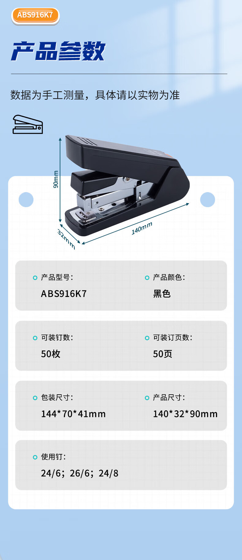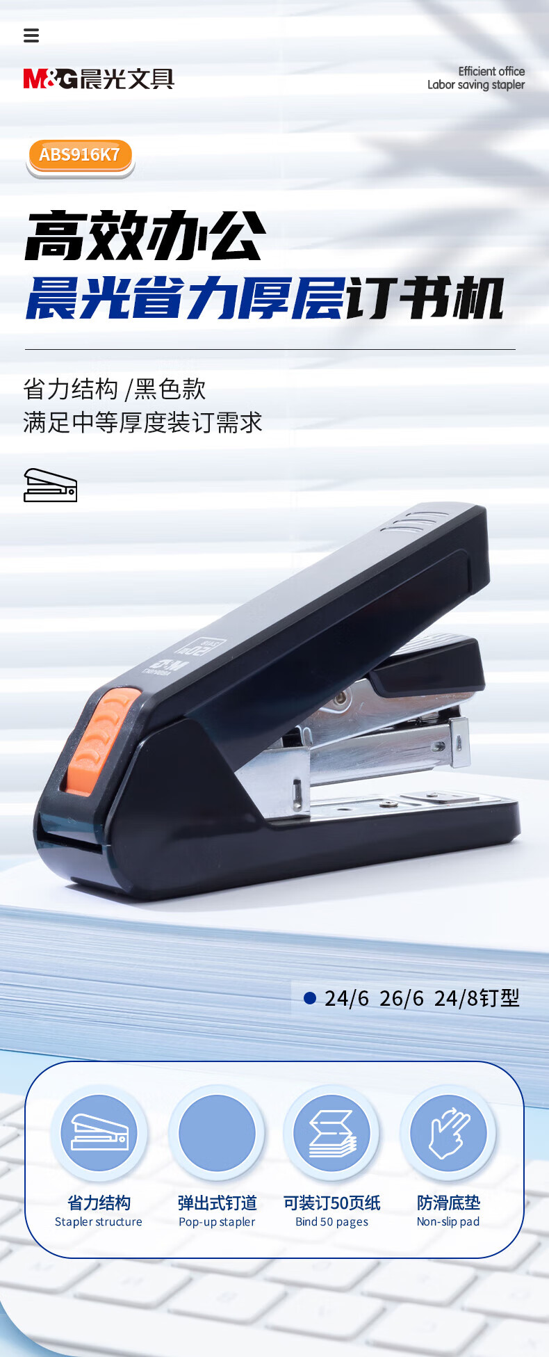 晨光订书机省力厚层50页(黑)ABS916K7(1个)