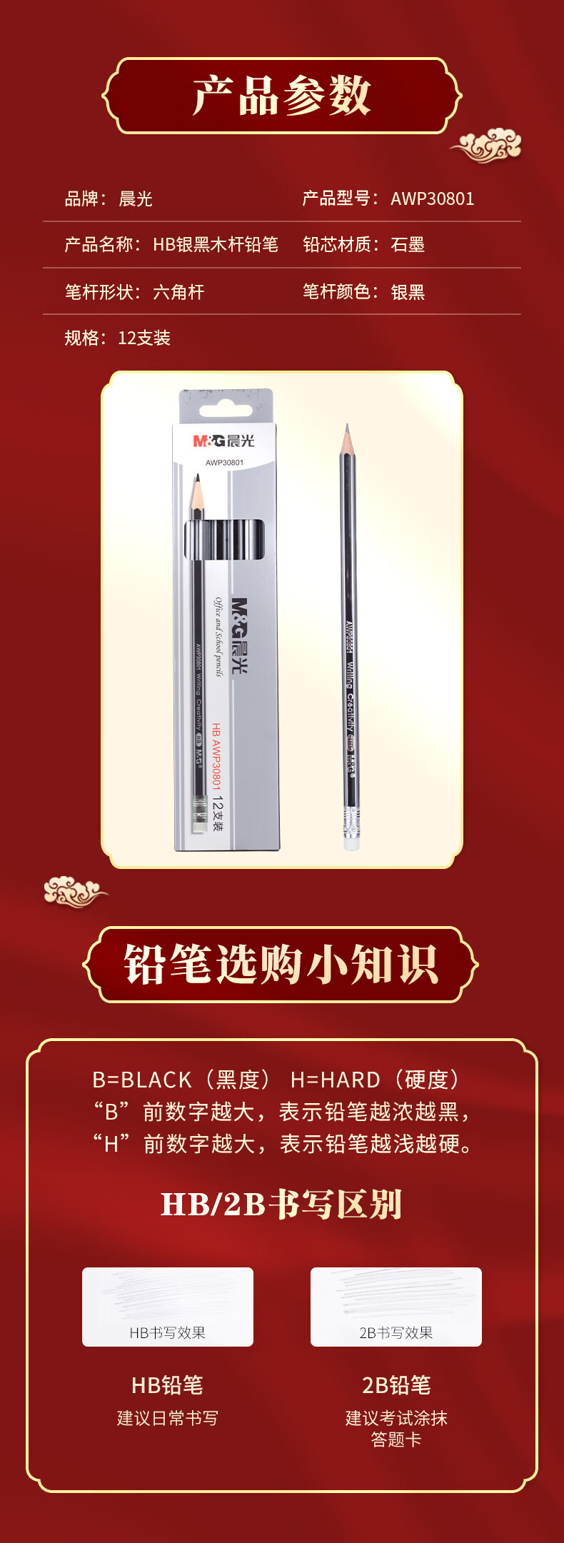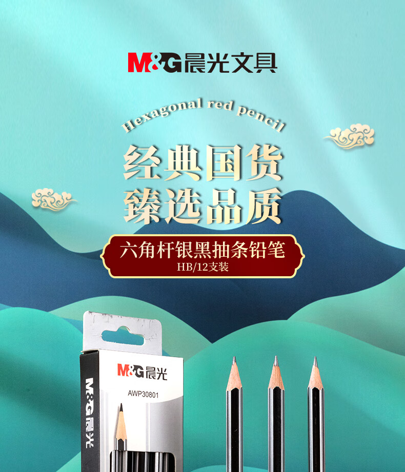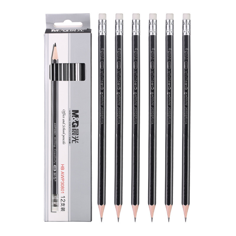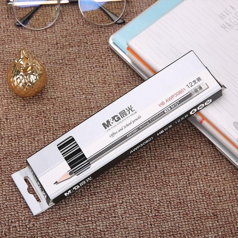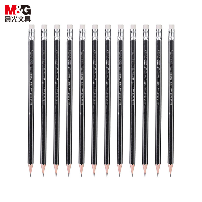 晨光木杆铅笔AWP30801银黑抽条六角HB(12支)
