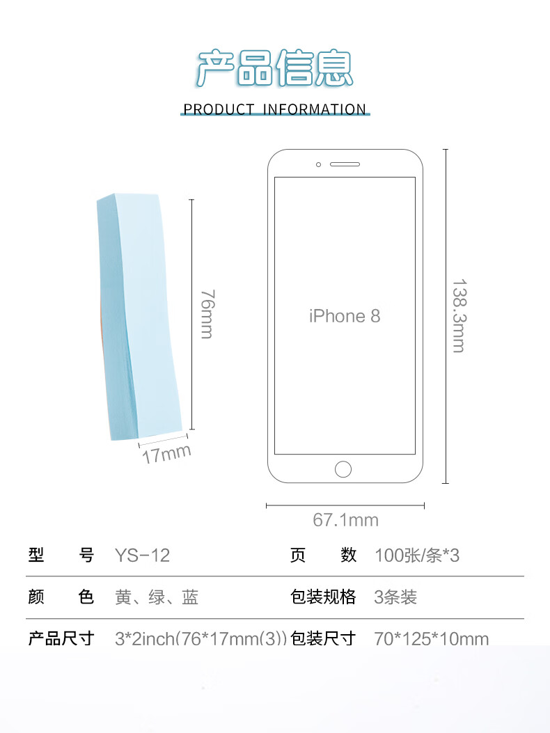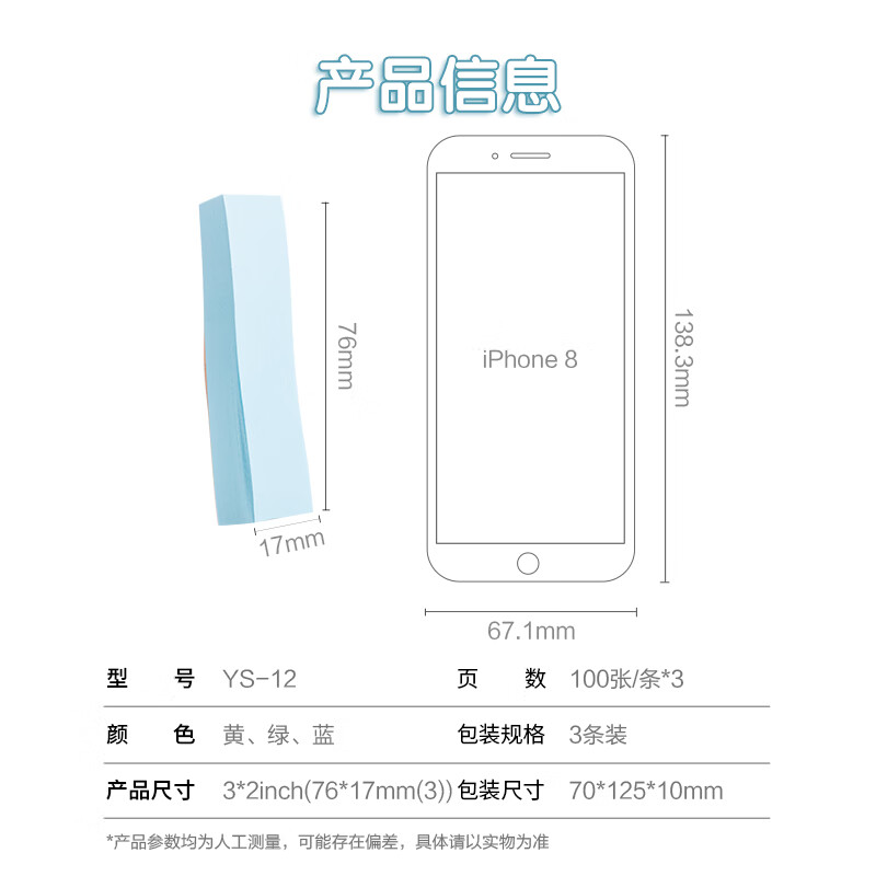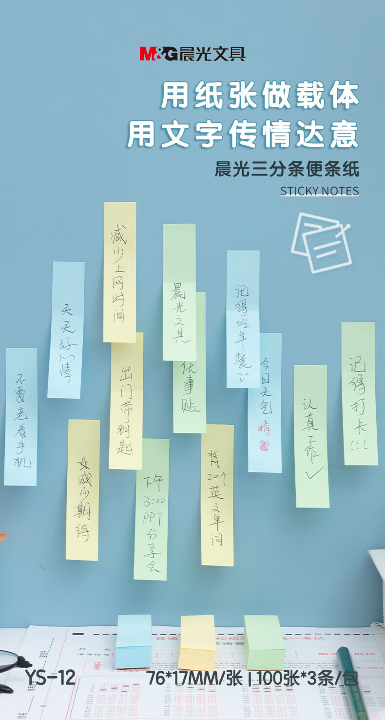 晨光3X2三分条自粘便条100(经典办公)YS-12 1包