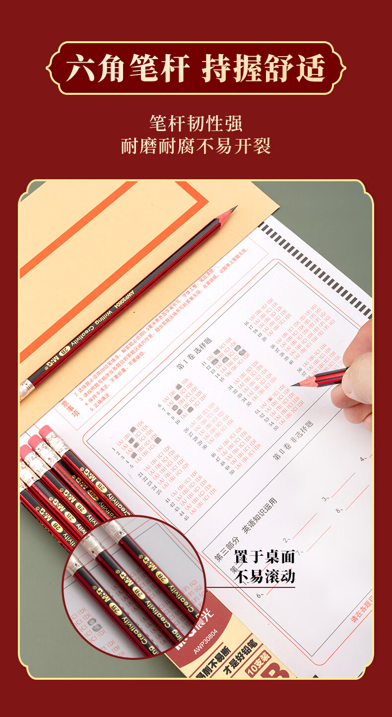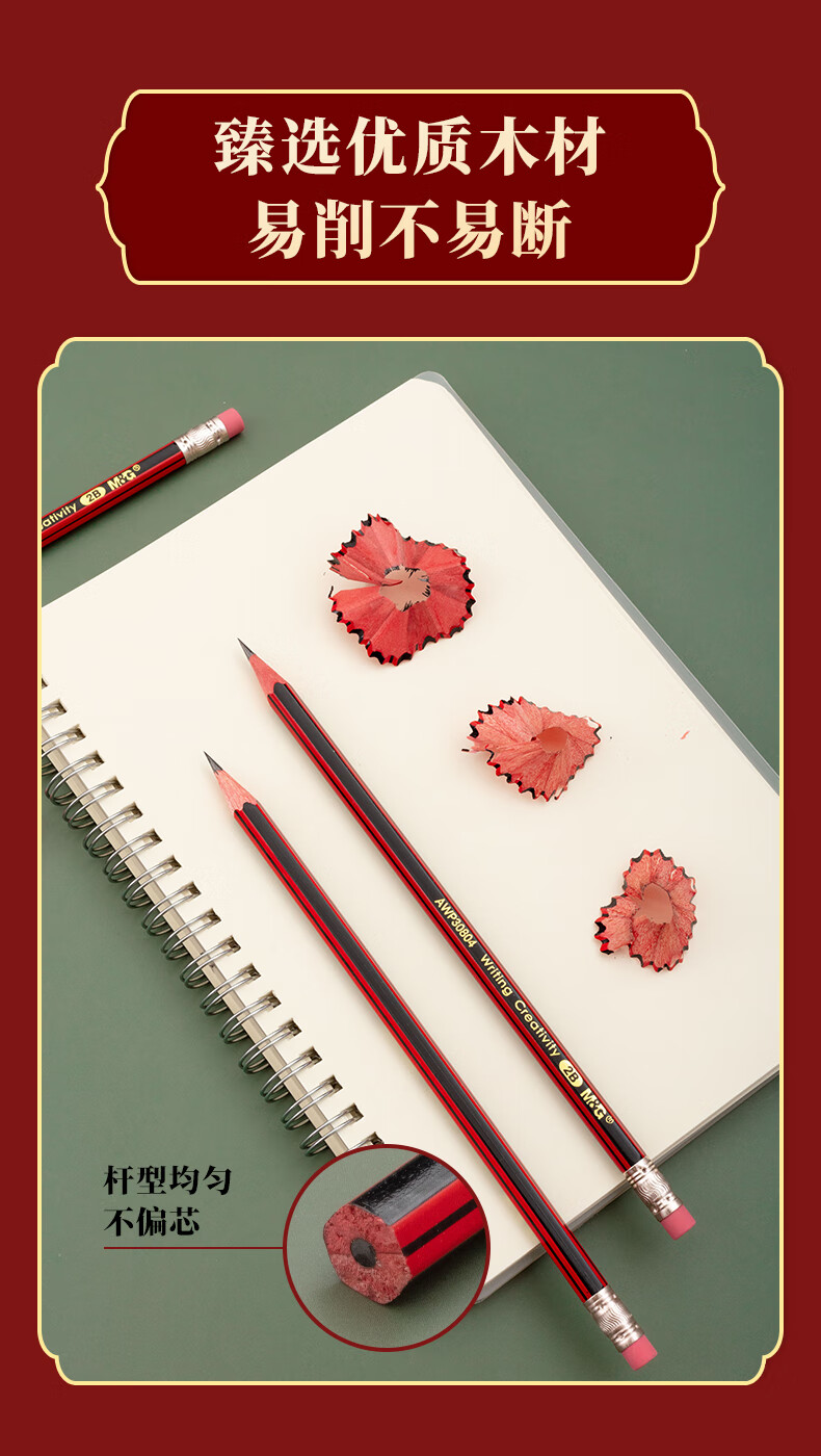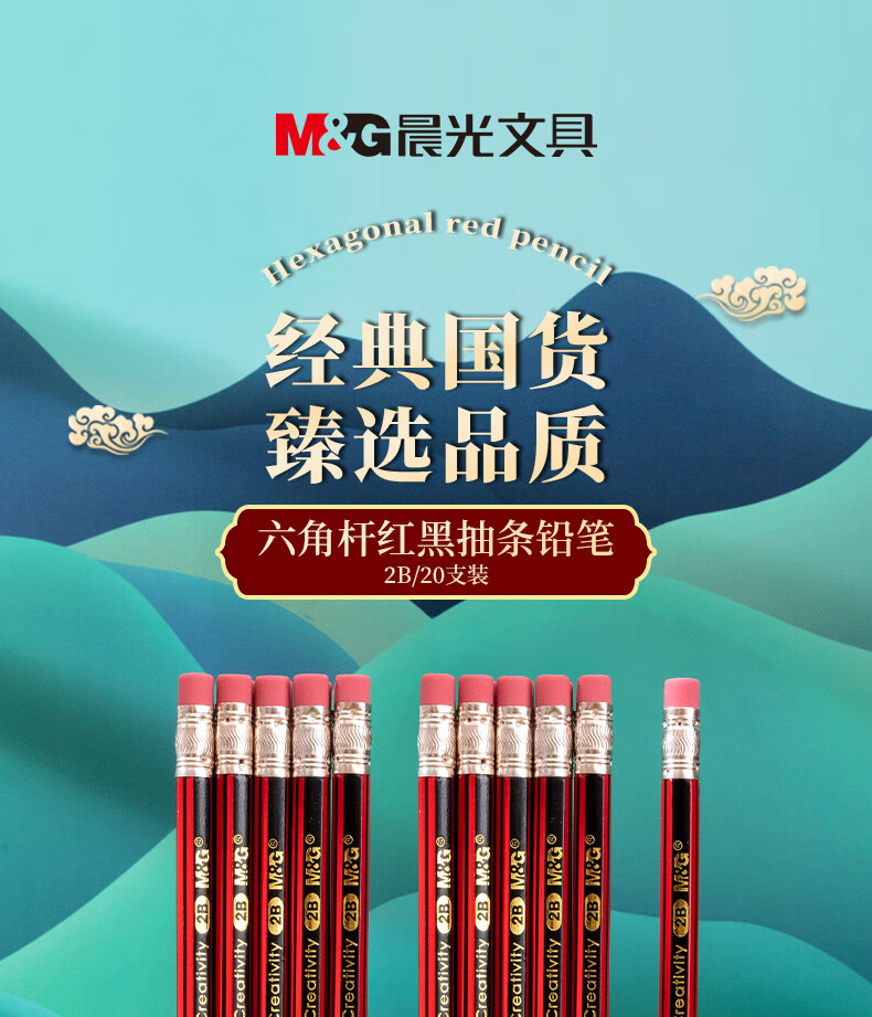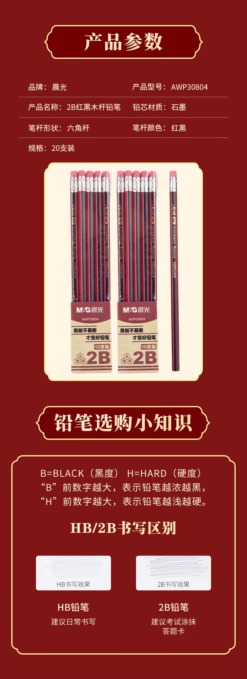 晨光木杆铅笔AWP30804红黑抽条六角2B(20支)