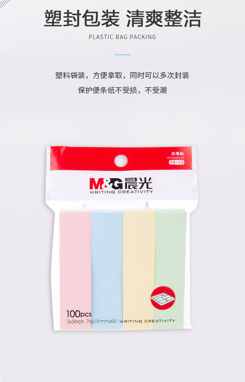 晨光3X3四分条自粘便条纸100(经典)YS-13 1包