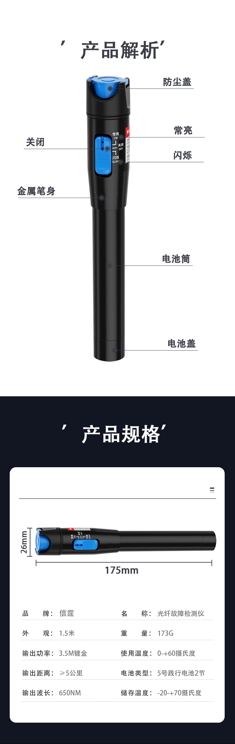 信霆 红光光纤测试笔 10mW镭射红光笔10公里通光笔