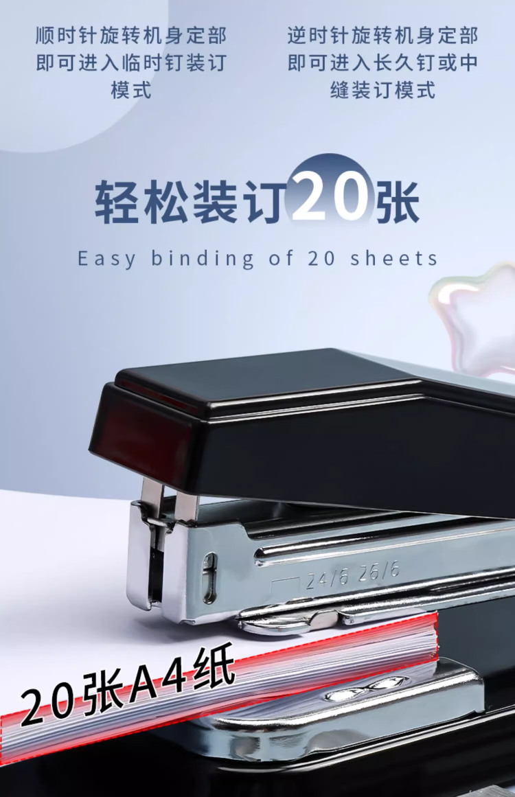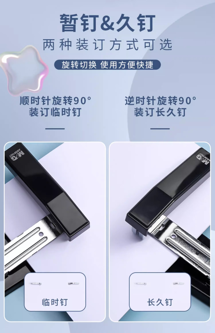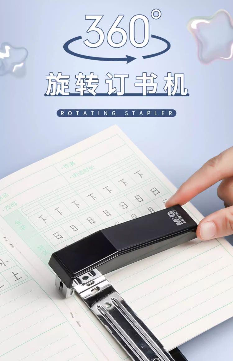 晨光订书机360°摇头12号混色ABS91627