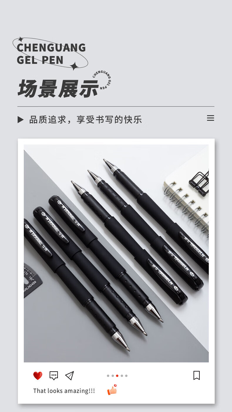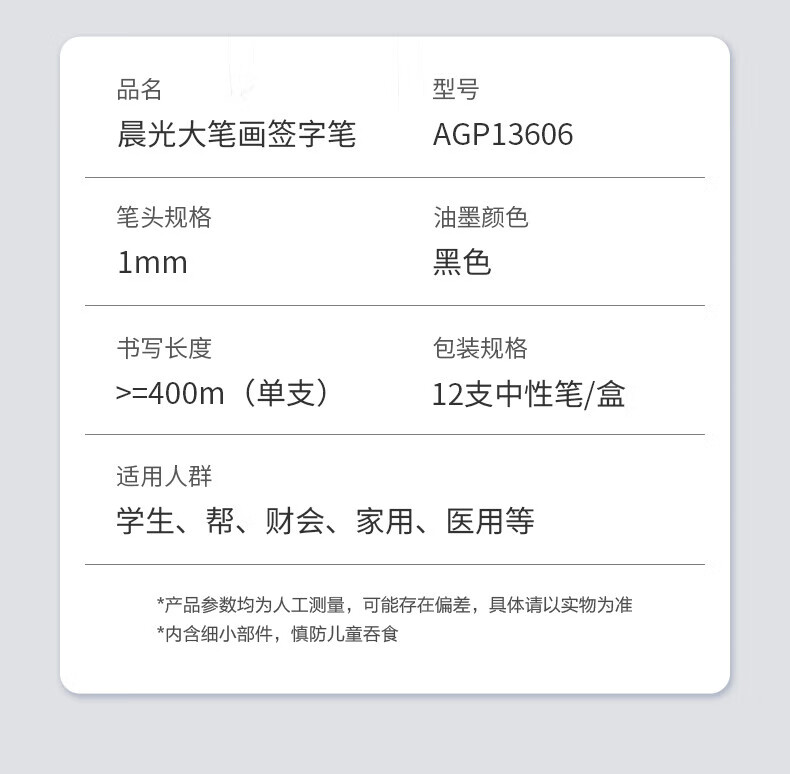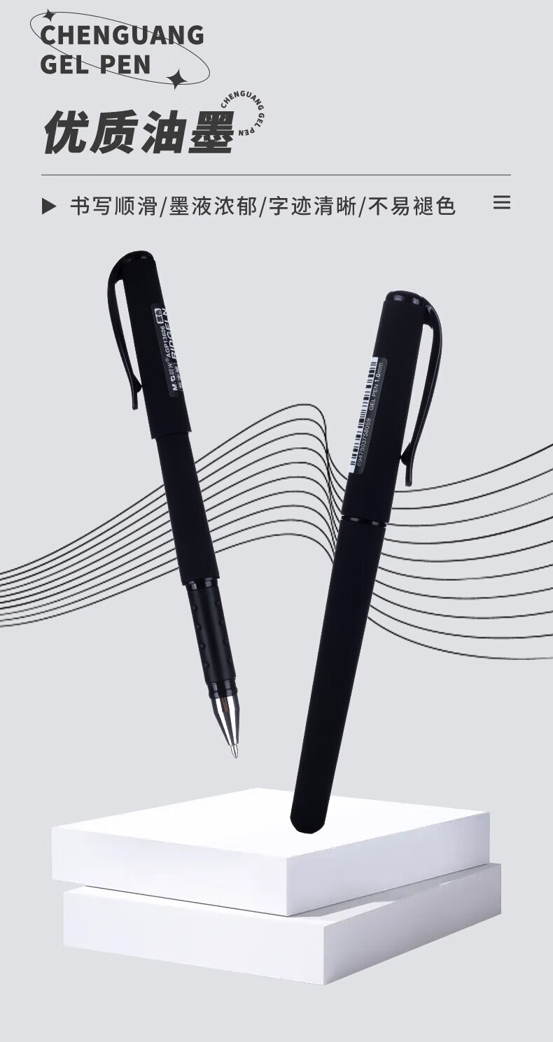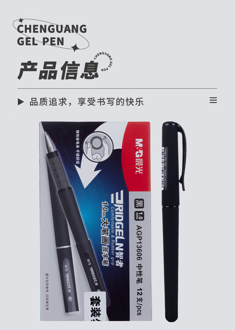 晨光拔盖中性笔AGP13606黑1.0mm 12支装