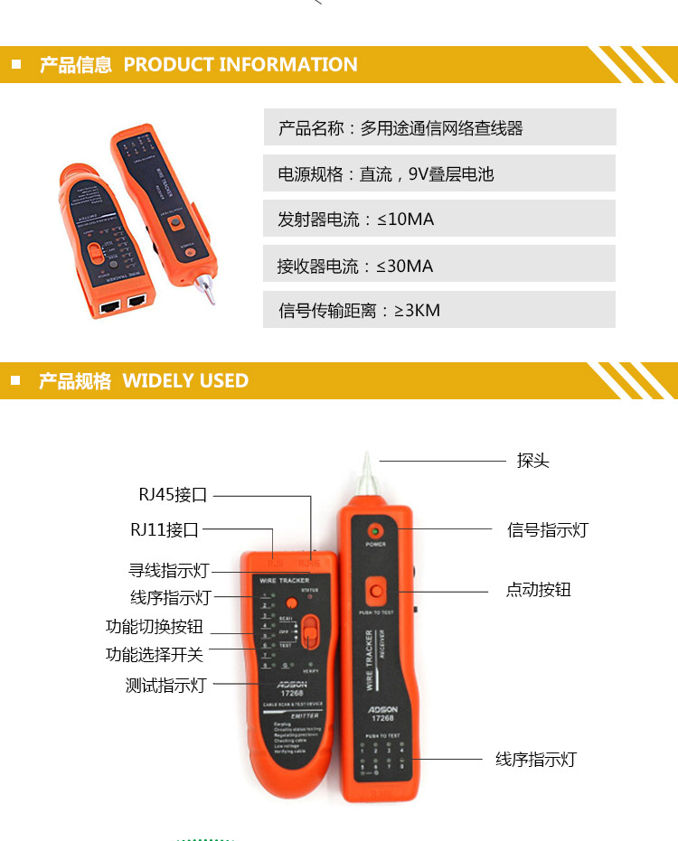 信霆 网络寻线仪 网络测线仪 网线测试 寻线仪网线带电巡线仪查线器套