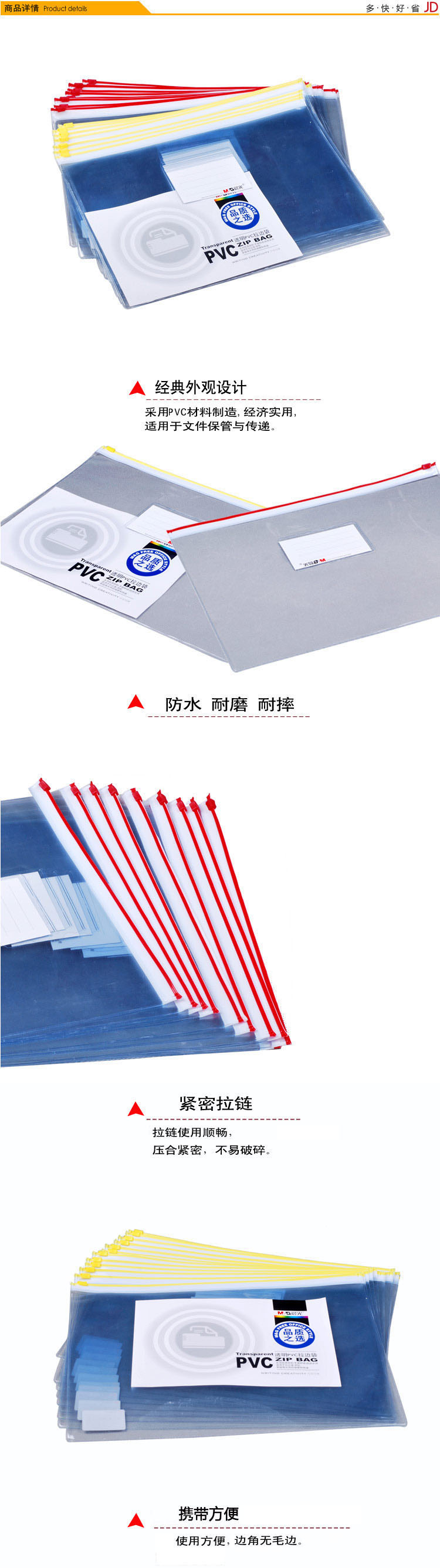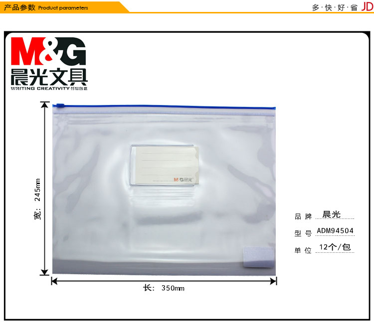 晨光拉边袋PVC透明A4混色ADM94504新 12个装 颜色随机