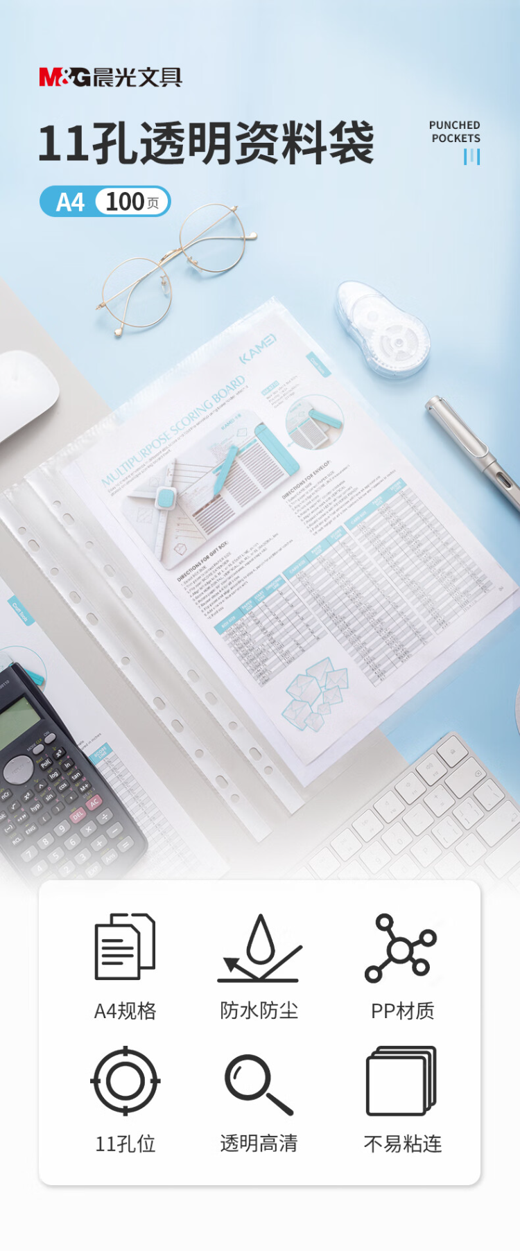 晨光保护袋活页11孔ADM94514 100页/袋