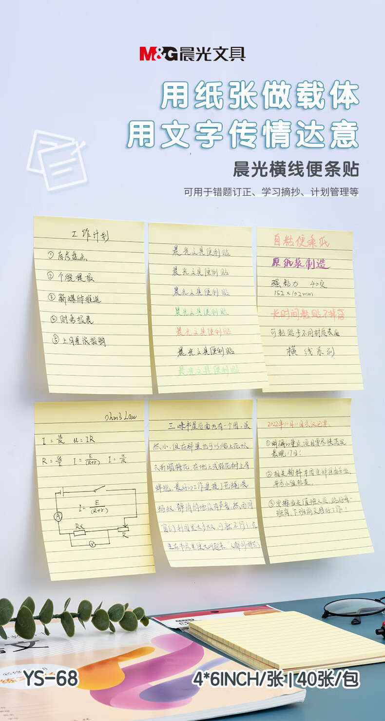 晨光4X6自粘便条纸40(横线)YS-68 1包