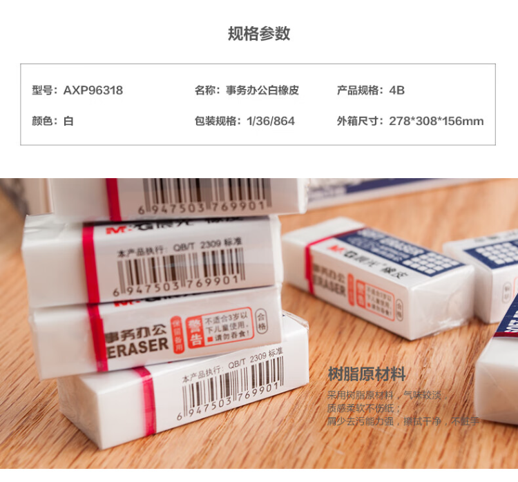 晨光橡皮事务办公AXP96318白4B(小)36块/盒 2盒