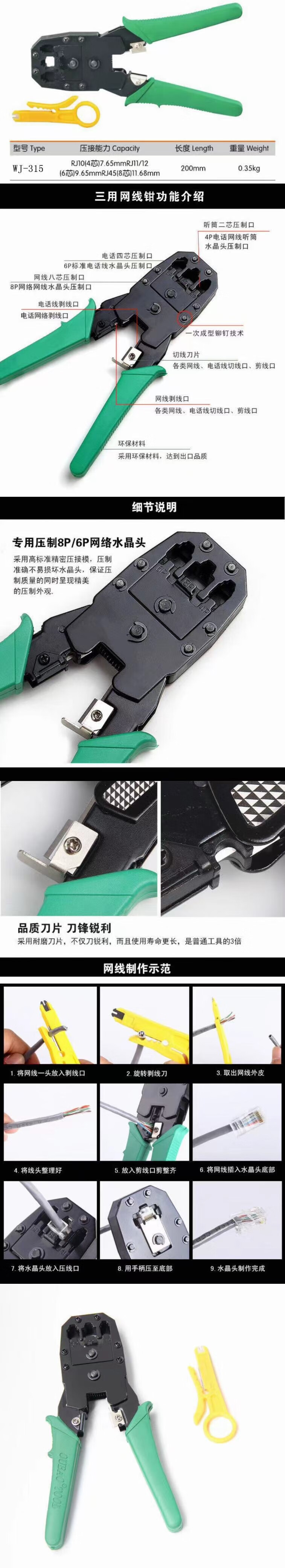 信霆 4P/6P/8P 三用网络压线钳 水晶头压线钳 多功能网络钳含剥线