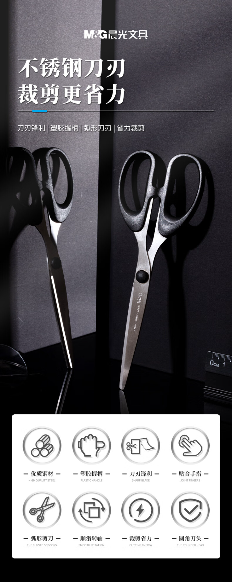 晨光剪刀经典办公195mmASS91312