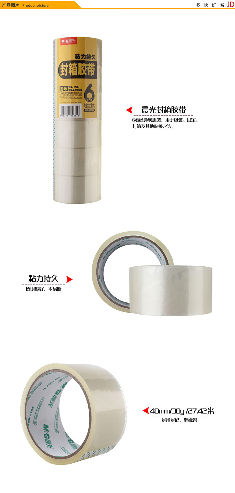 晨光封箱胶带普透48mm*30y(6卷)AJD97326