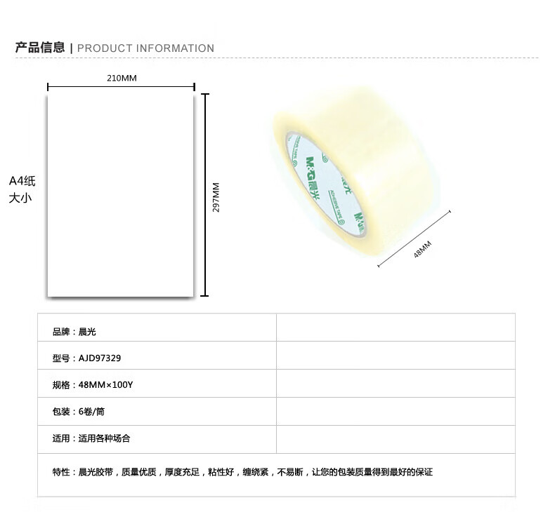晨光封箱胶带普透48mm*100y(6卷)AJD97329