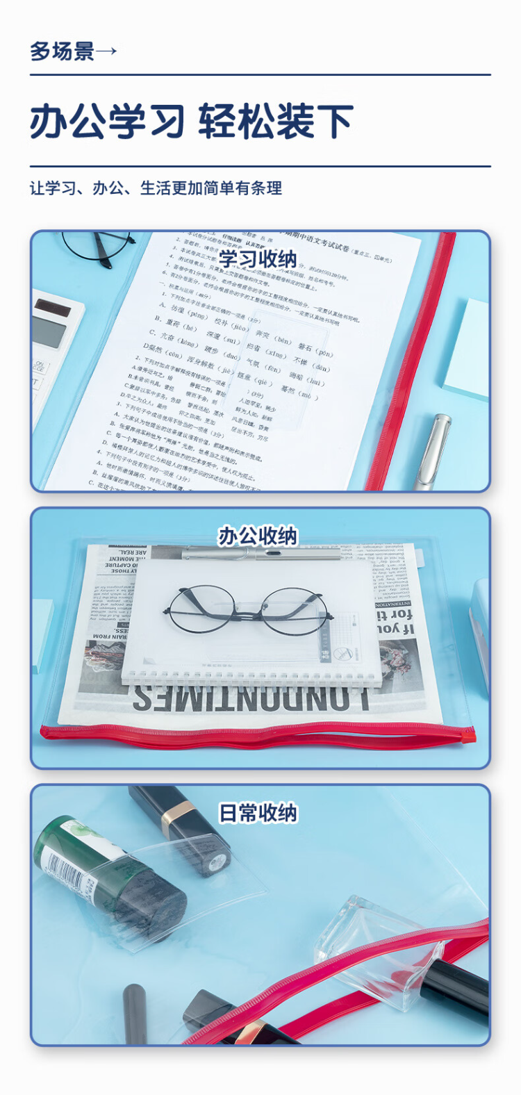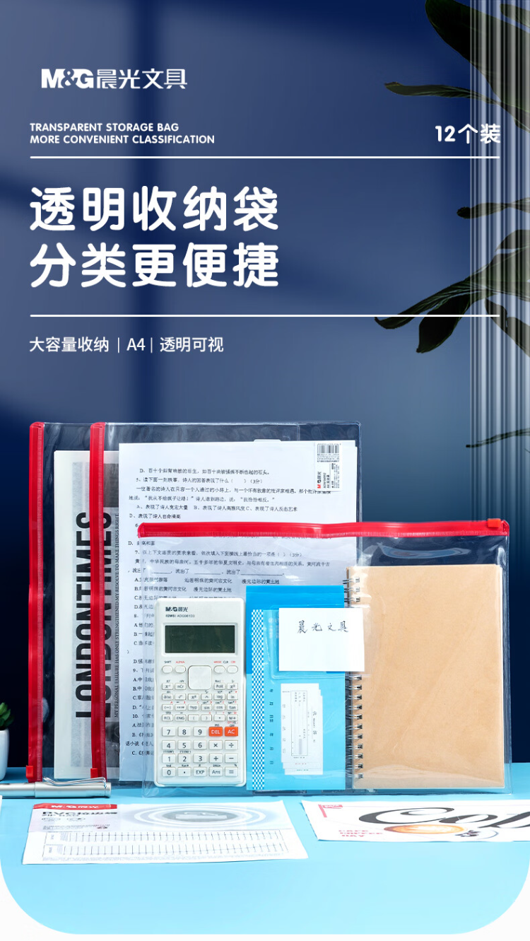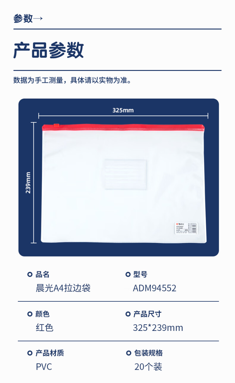 晨光拉边袋PVC透明A4混色ADM94552新 20个装颜色随机
