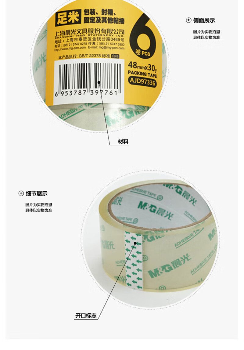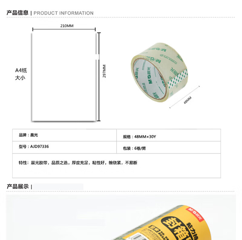 晨光封箱胶带超透48mm*30y(6卷)AJD97336