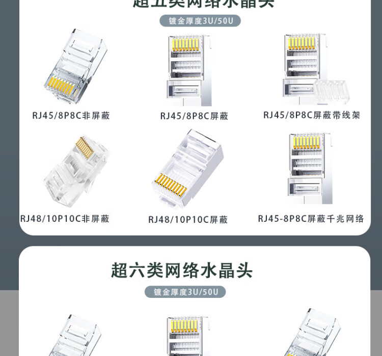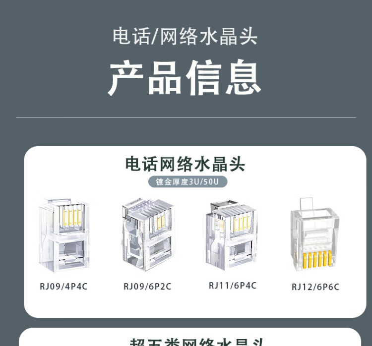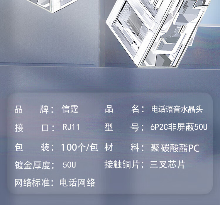 信霆 RJ116P2C01 RJ11/6P2C 50U 水晶头 透明 100个/包
