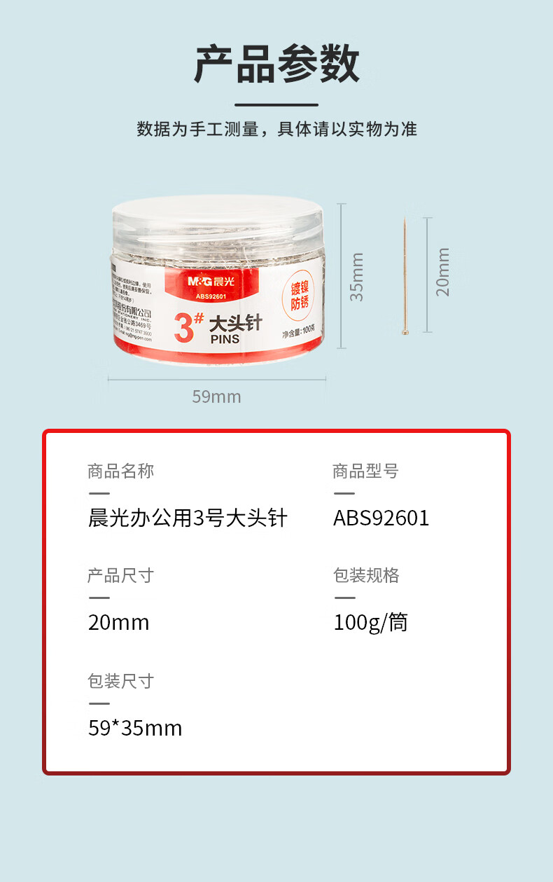 晨光大头针办公用PVC筒装ABS92601(1筒)