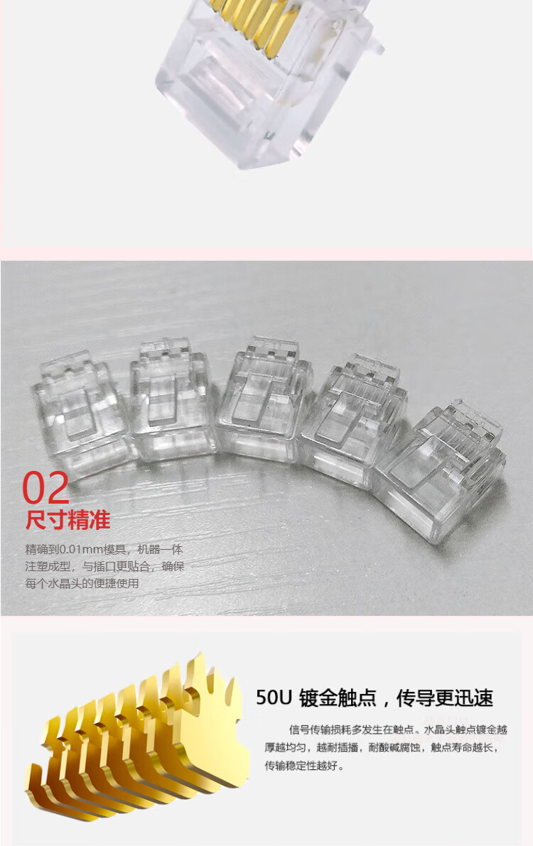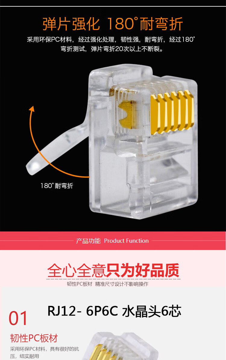 信霆 RJ126P6C02 RJ12/6P6C 3U 水晶头 透明 100个/包