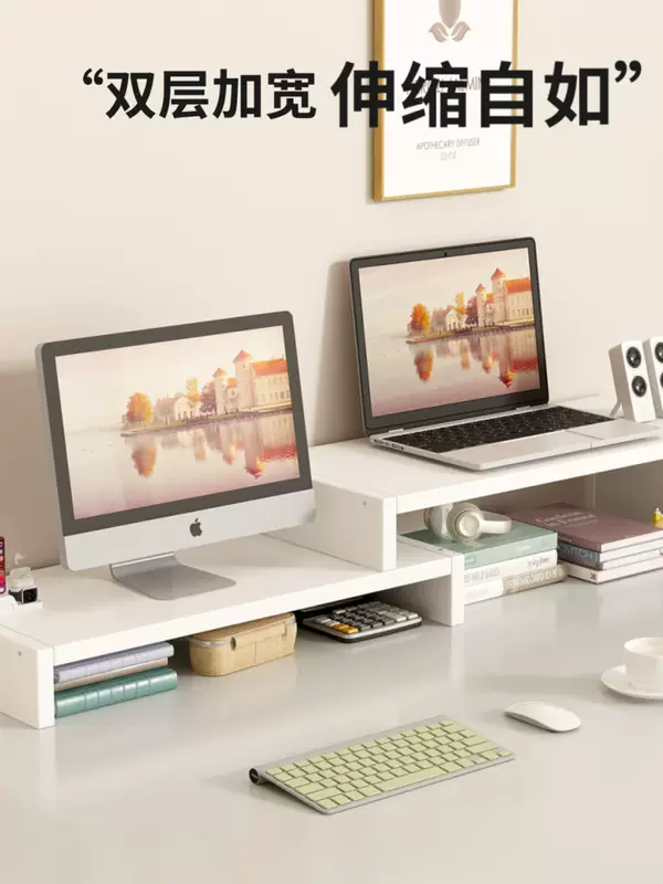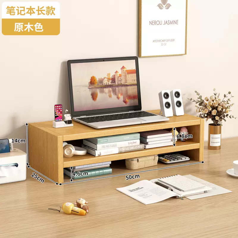 笔记本电脑增高架(单层加宽长款)原木色50x25x8cm