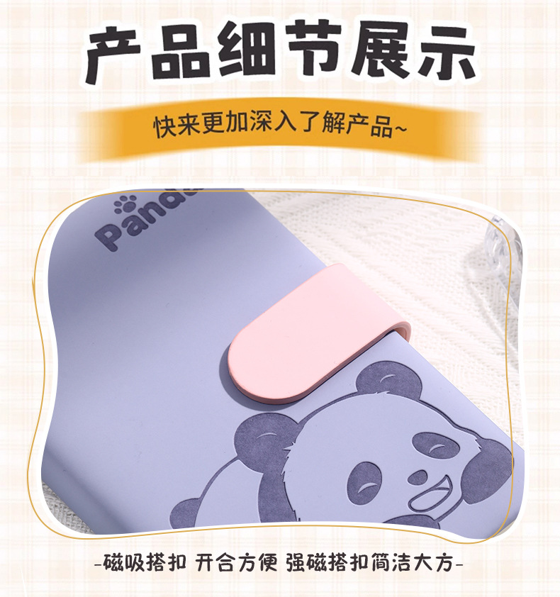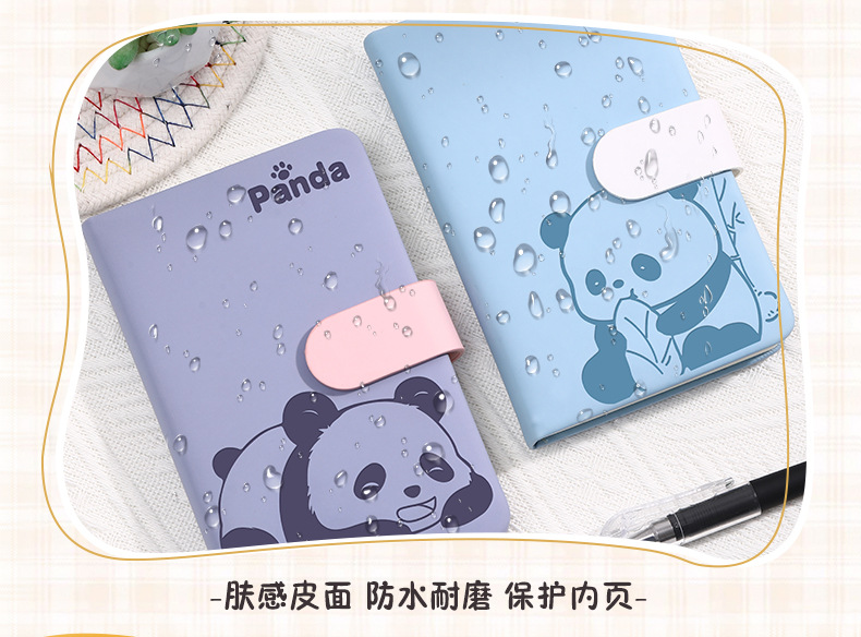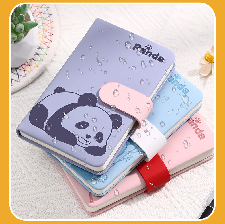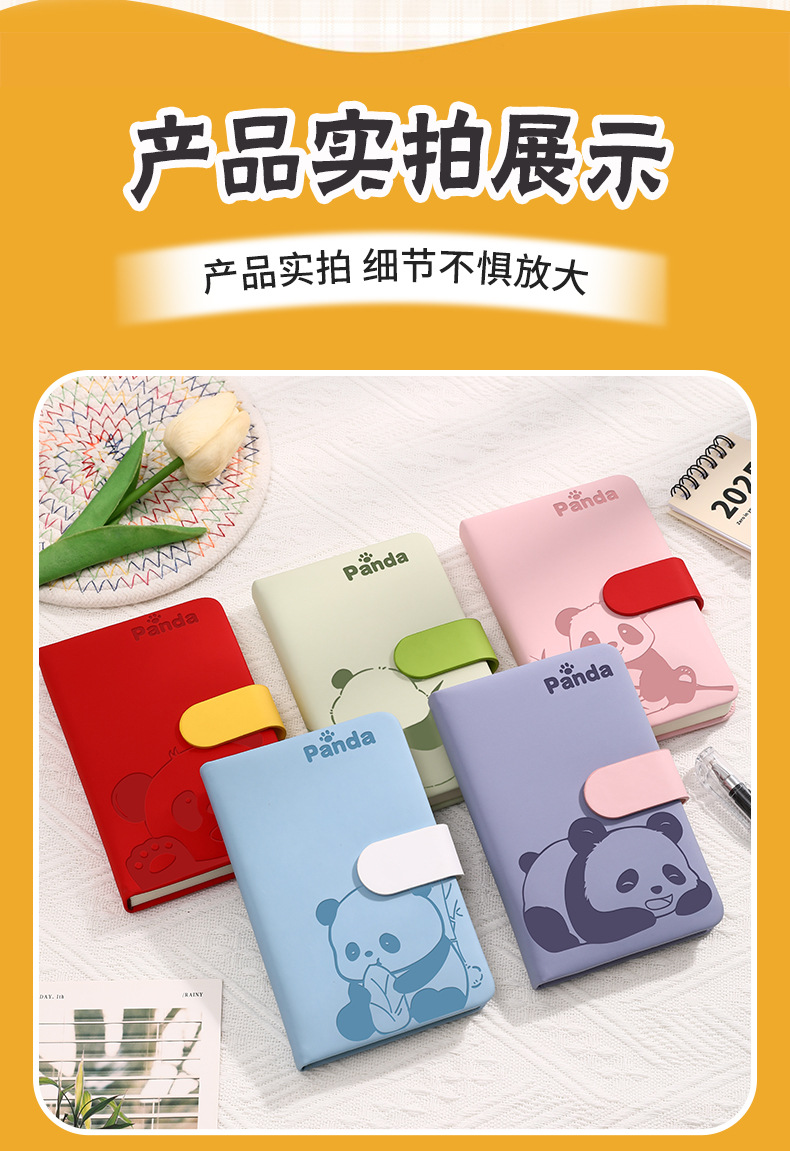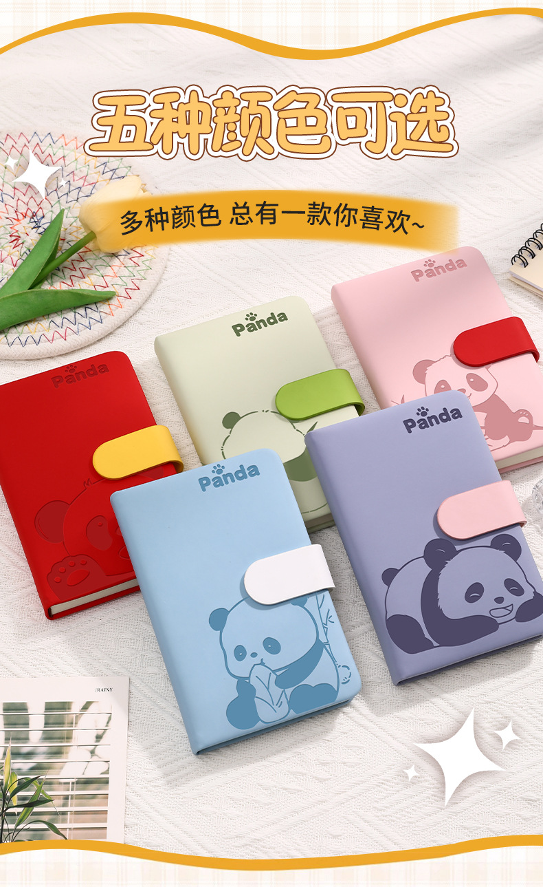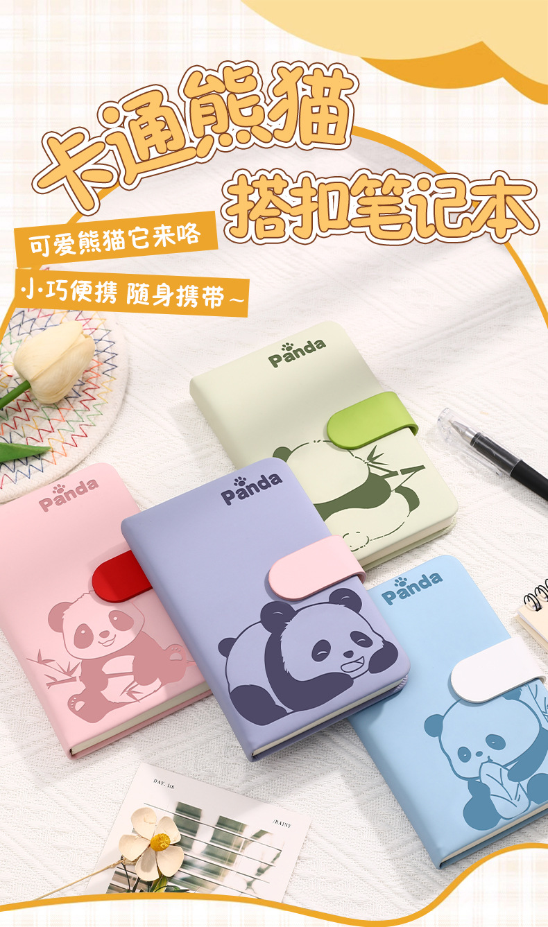 熊猫搭扣笔记本本子 A6绿色-横线【送1支随身笔】