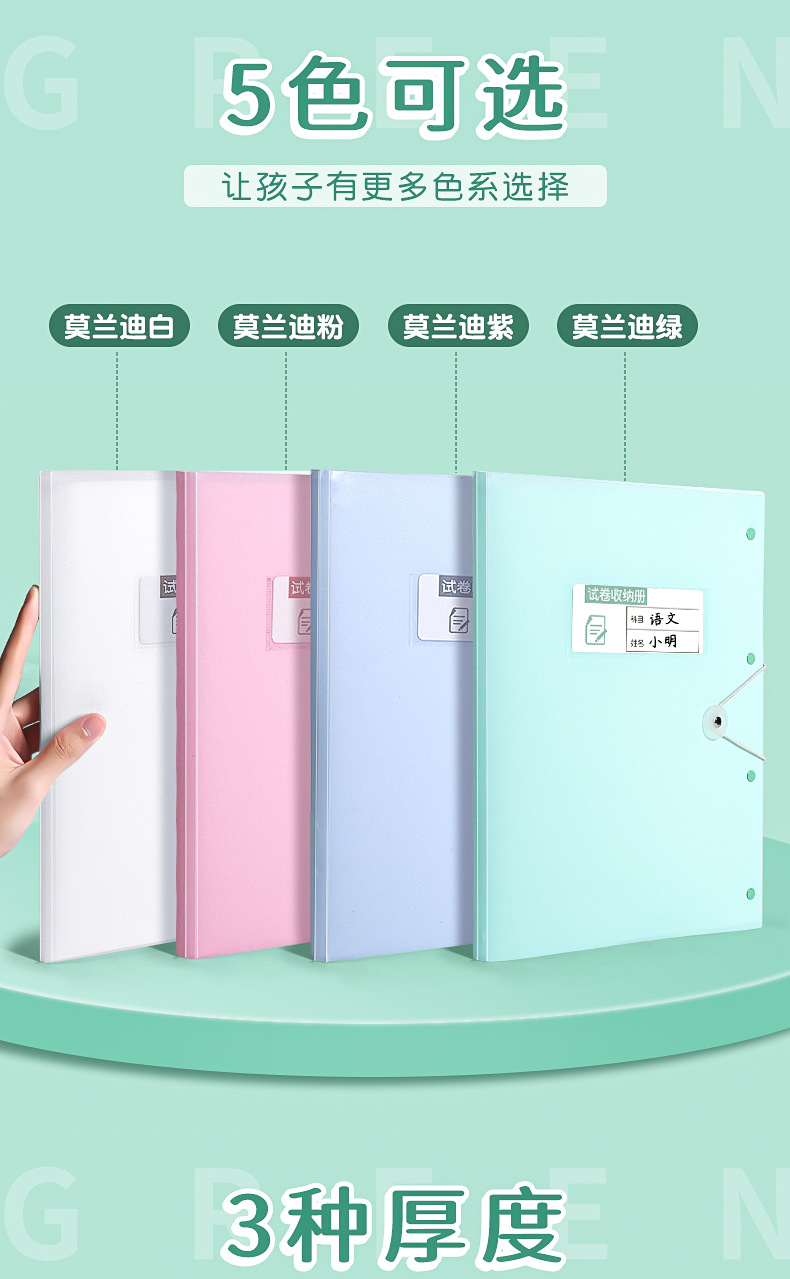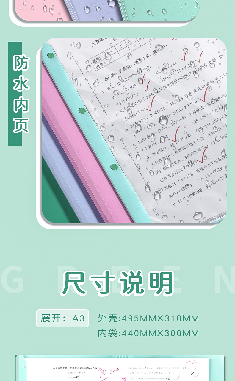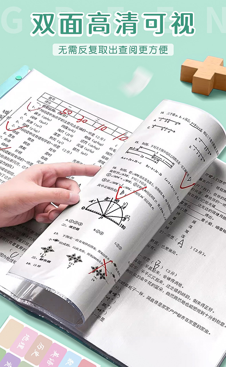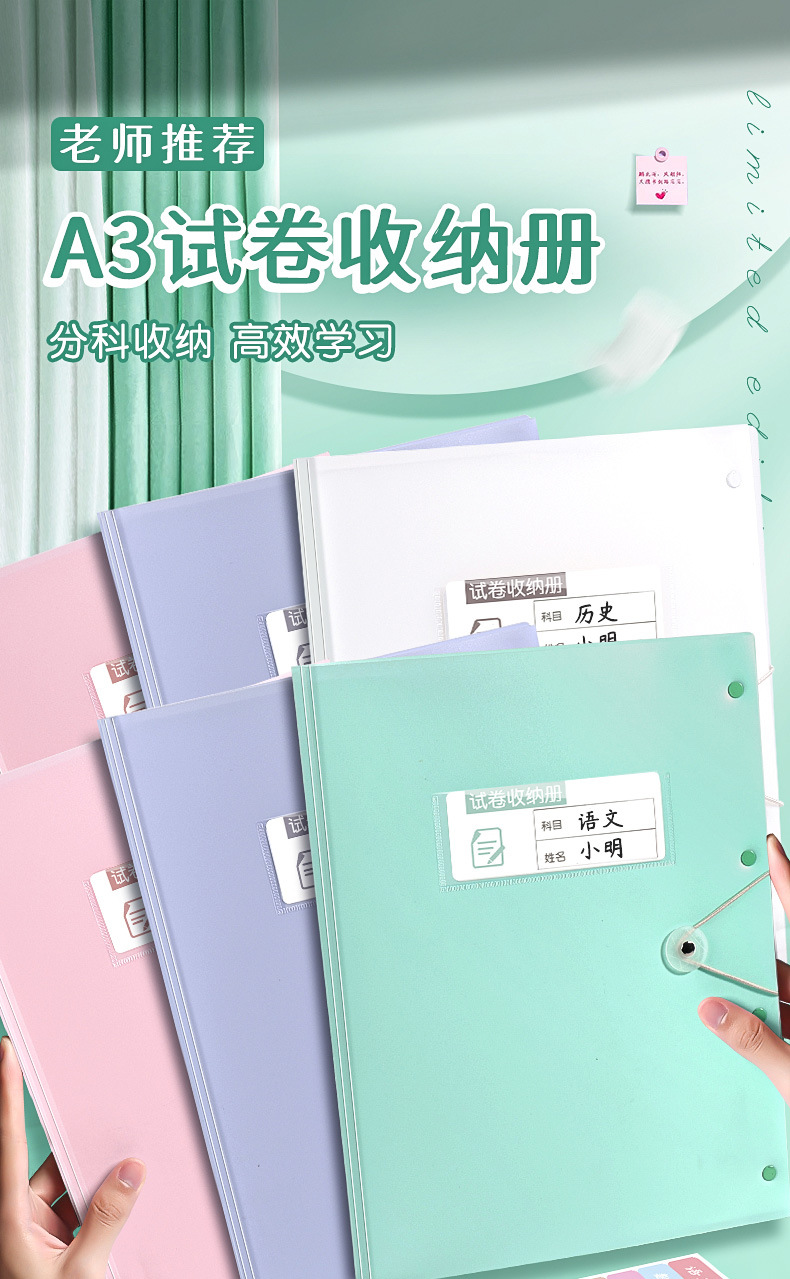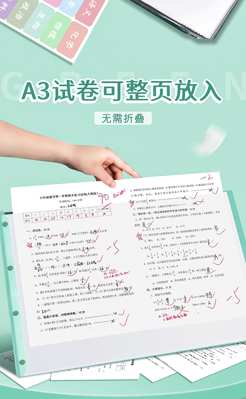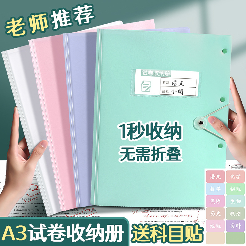 A3试卷收纳册透明多层插页文件夹 【送科目贴】; 60页 可放120张 2本装