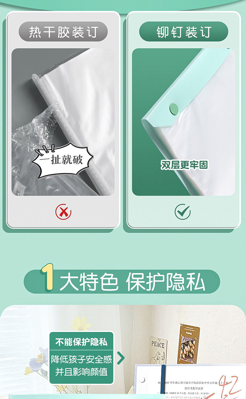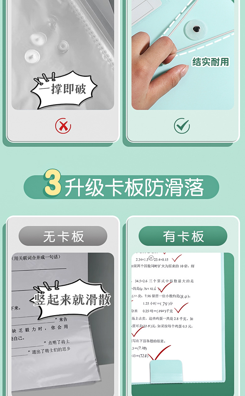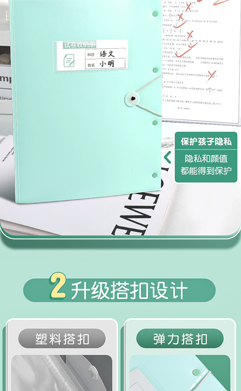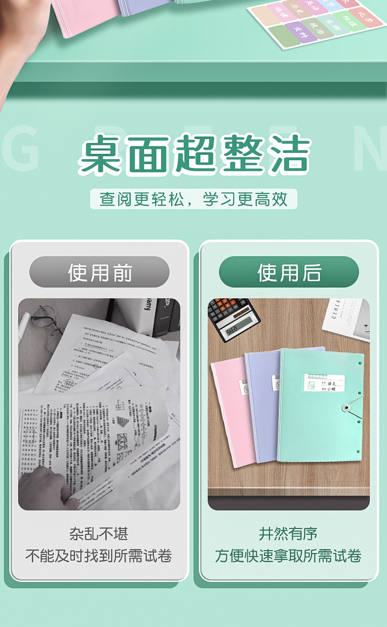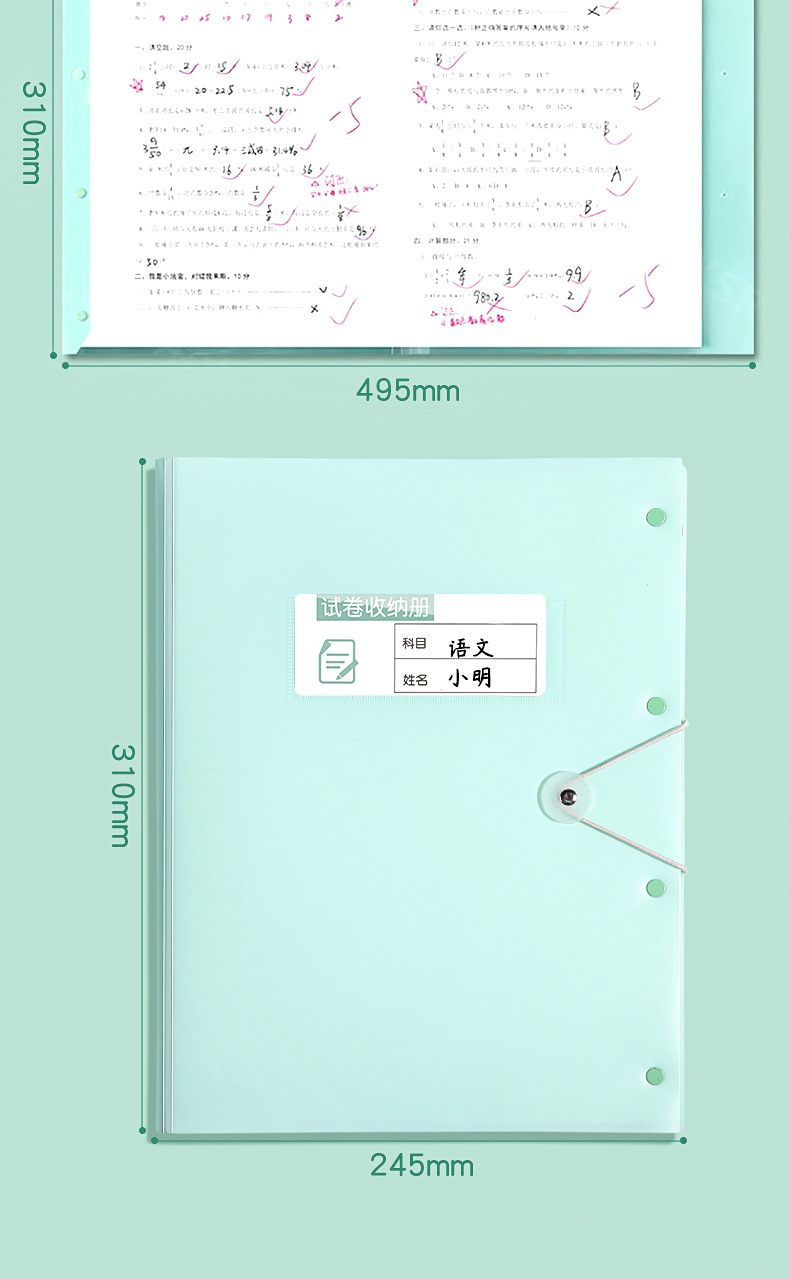A3试卷收纳册透明多层插页文件夹 【送科目贴】; 60页 可放120张 2本装