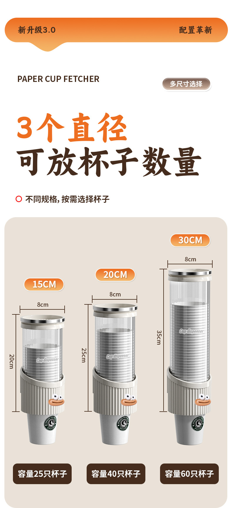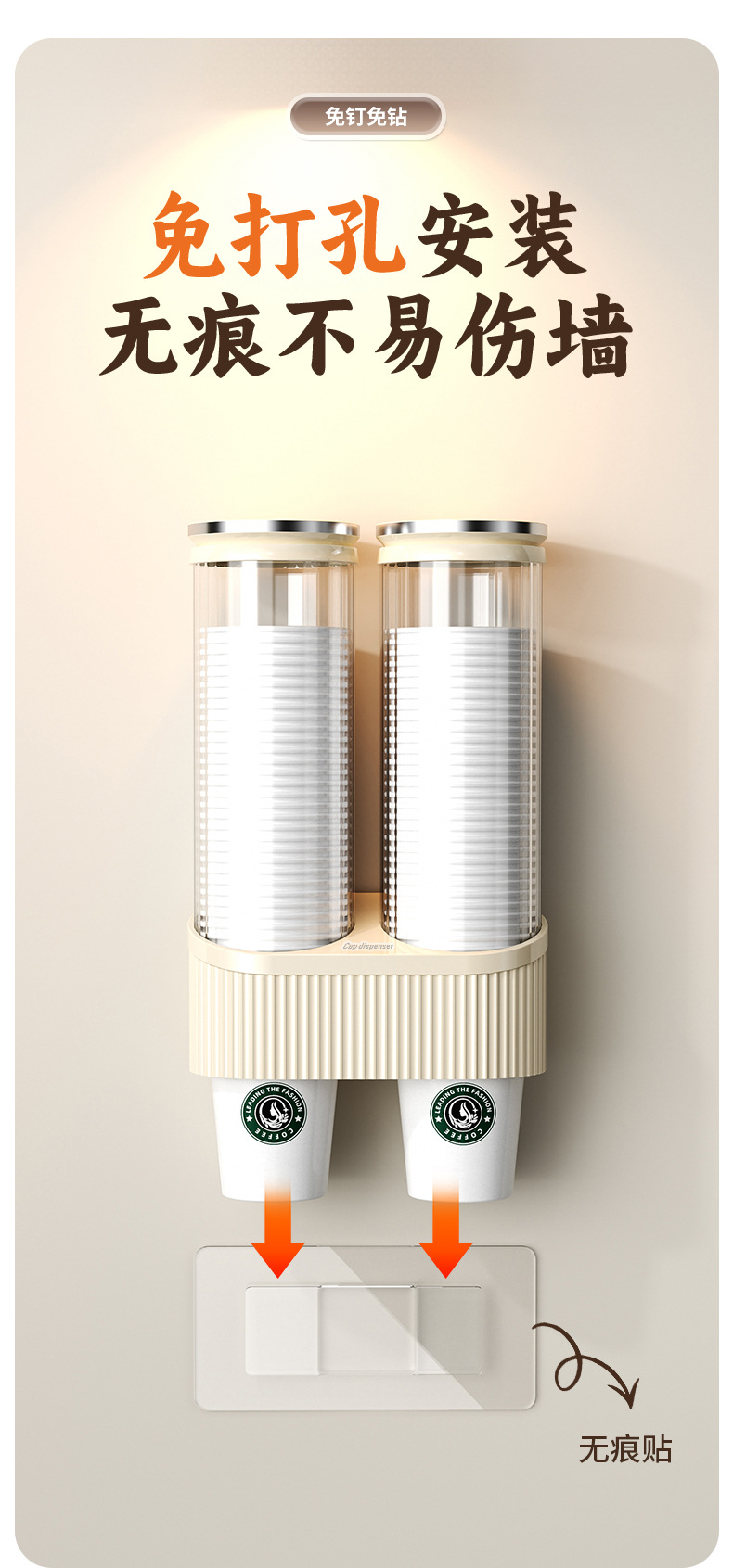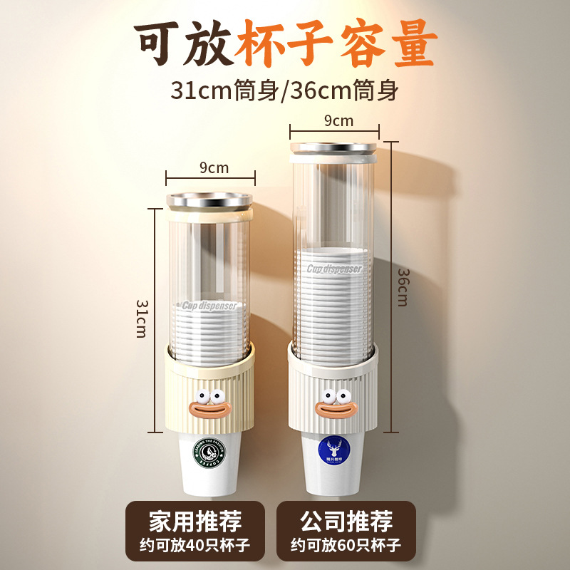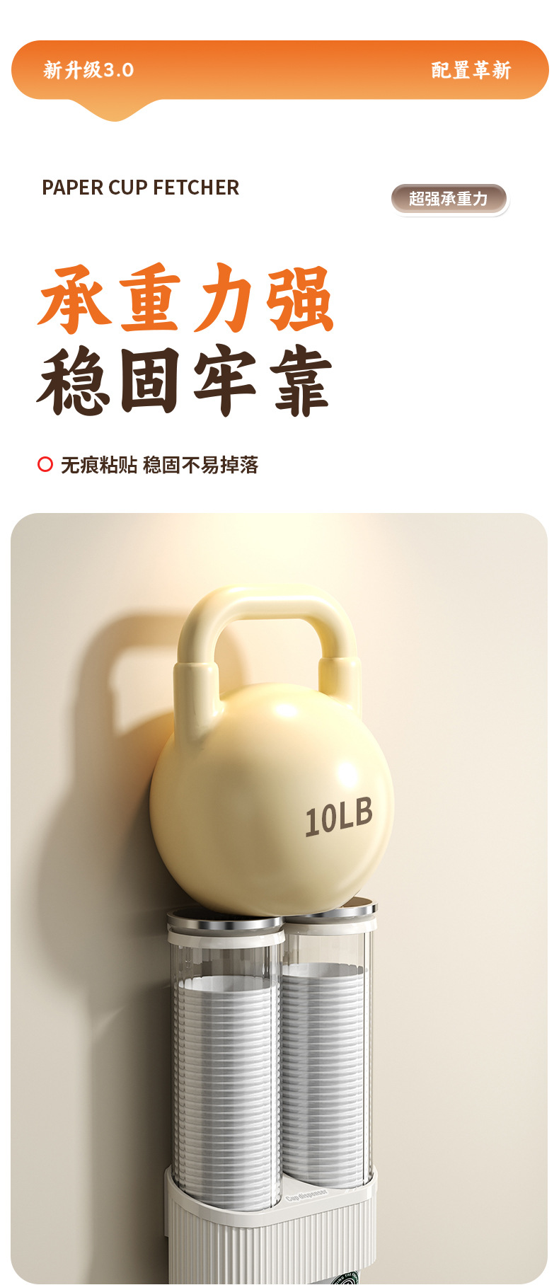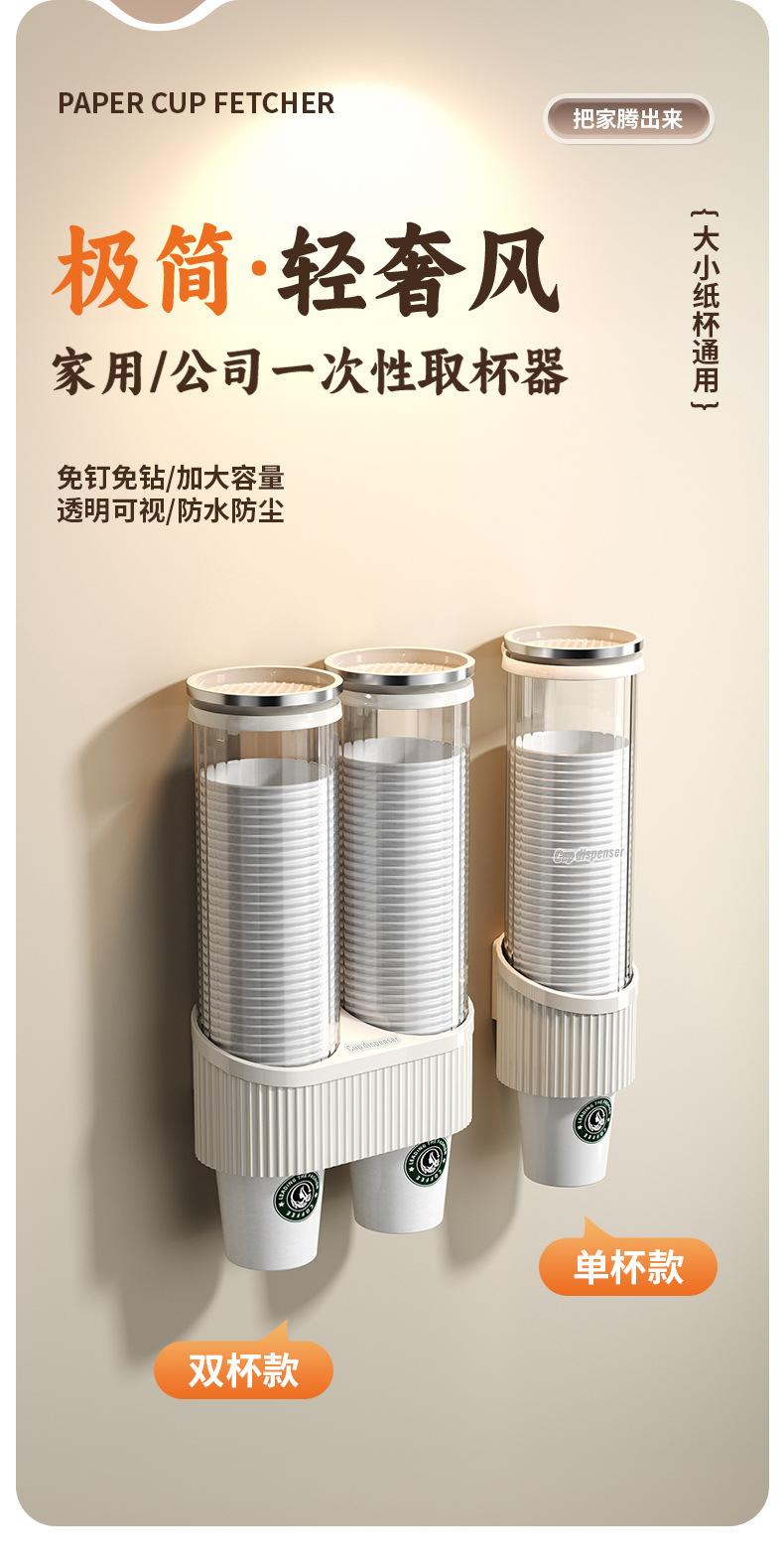 一次性杯子取杯器壁挂式免打孔饮水机旁放纸杯架 白色-单杯【加高款】