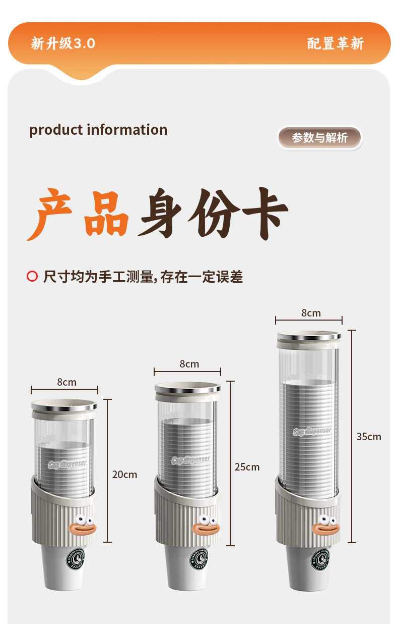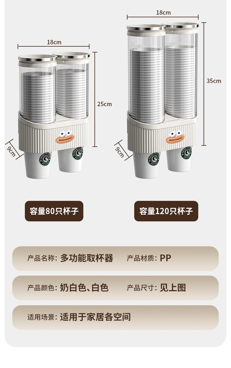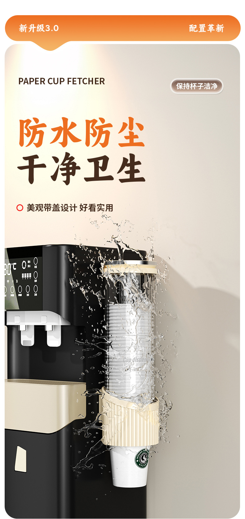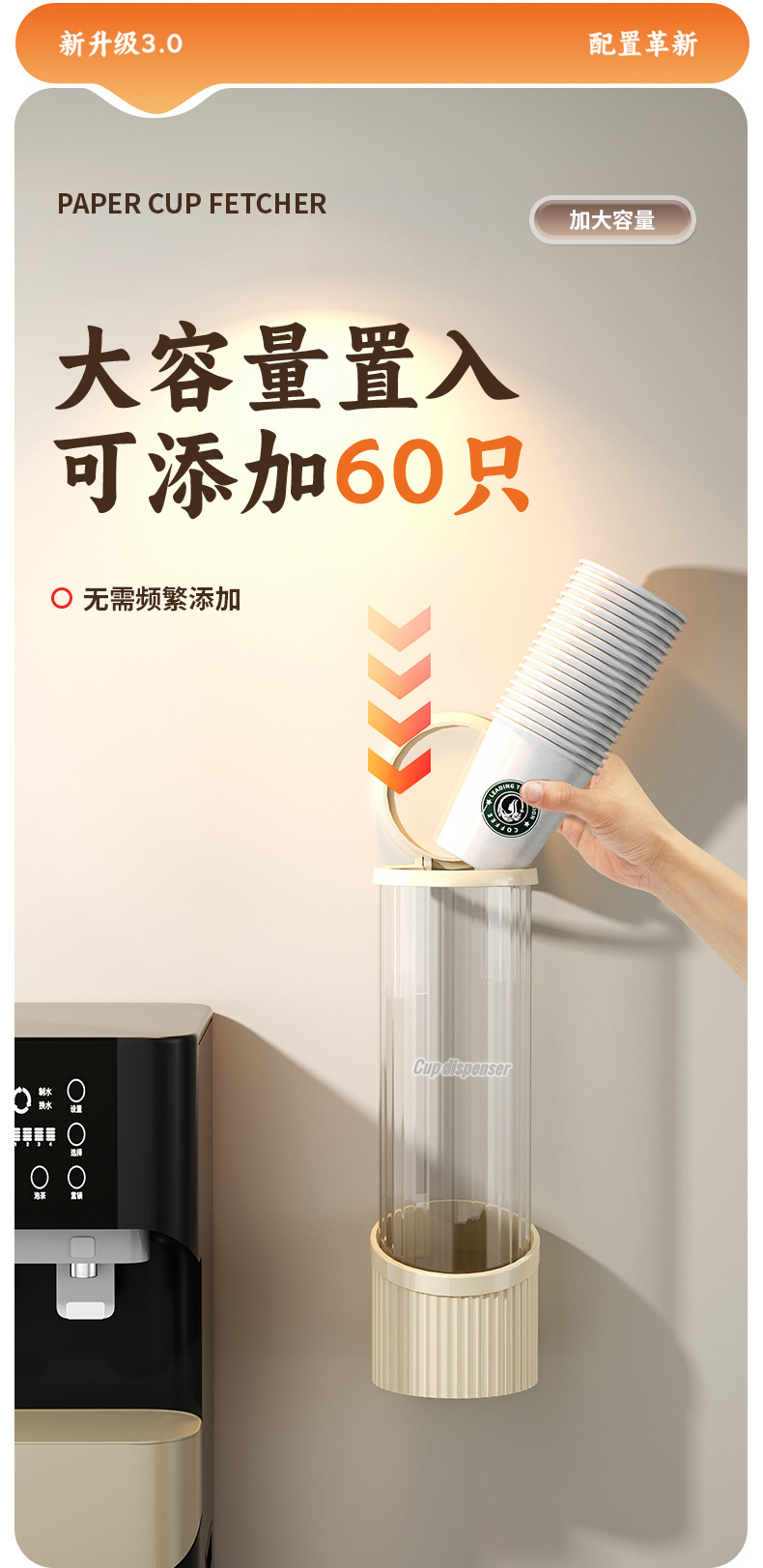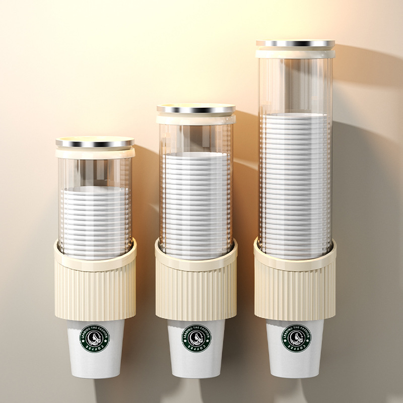一次性杯子取杯器壁挂式免打孔饮水机旁放纸杯架 白色-单杯【加高款】