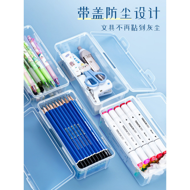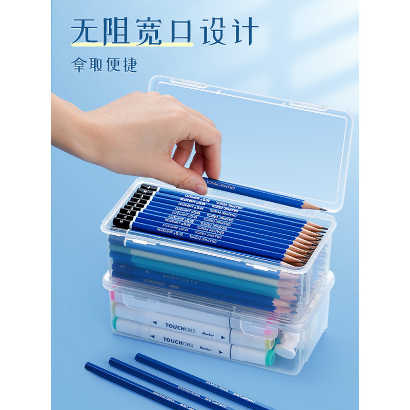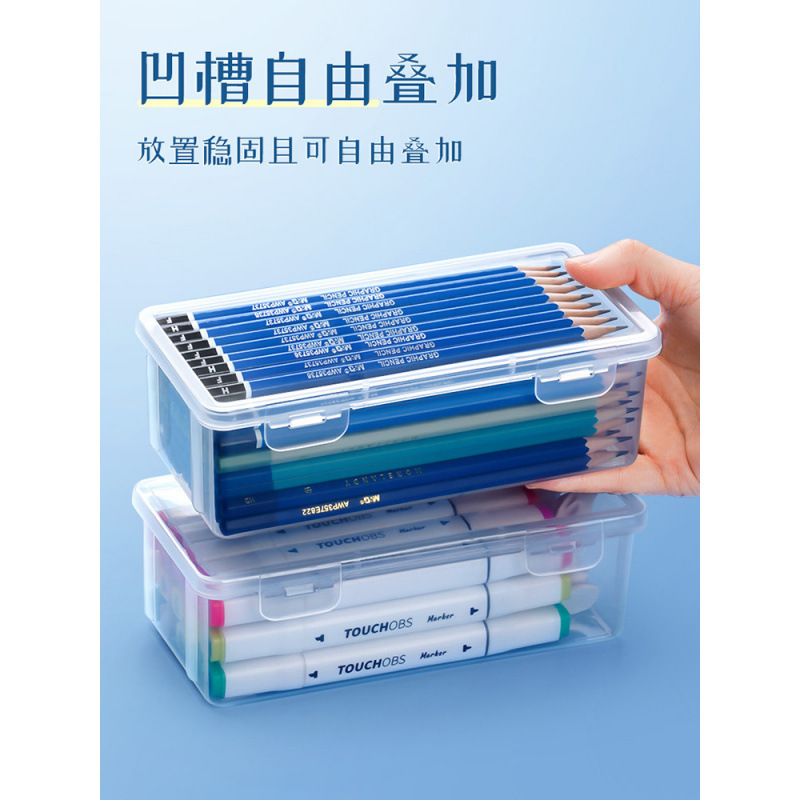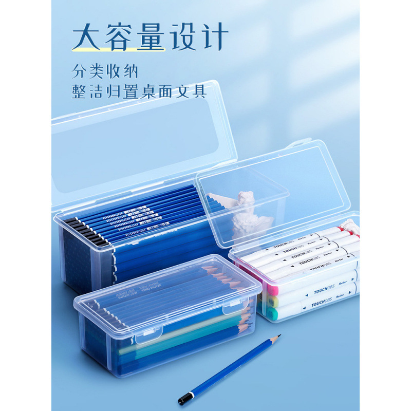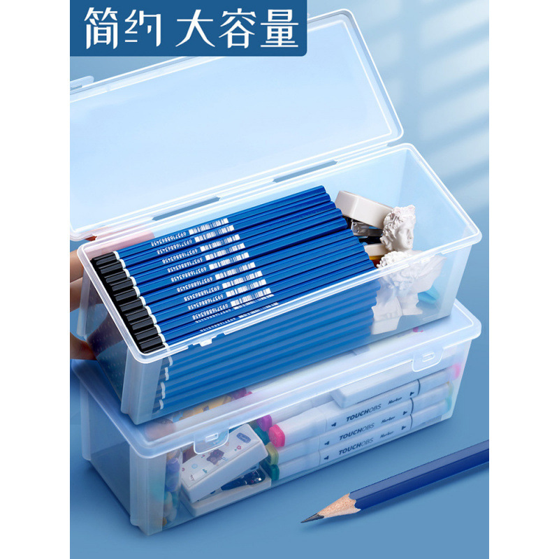 透明盒超大收纳盒桌面素描盒彩蜡画水彩盒子 大号27长*8.5高*8.7宽cm