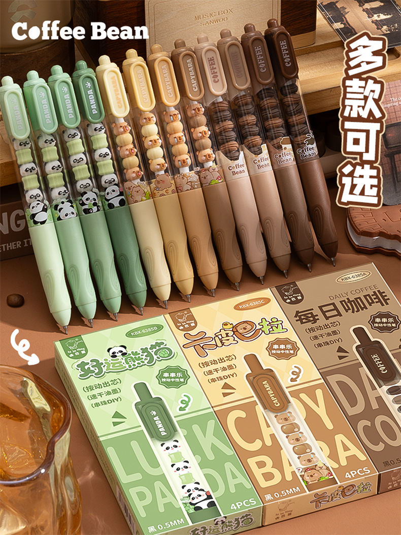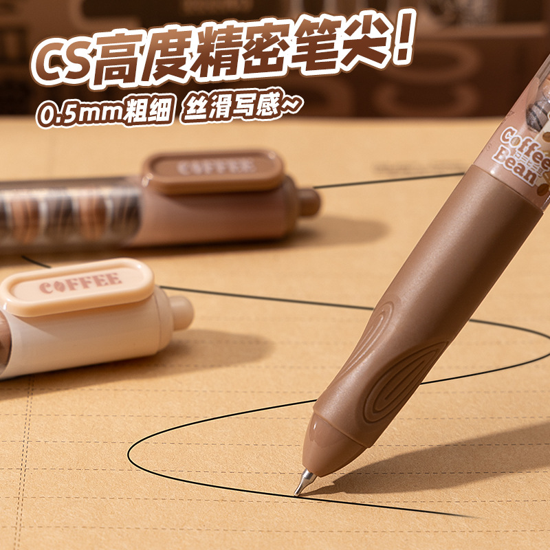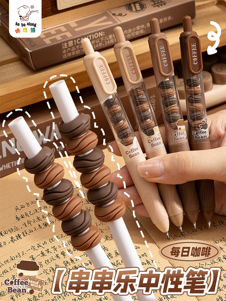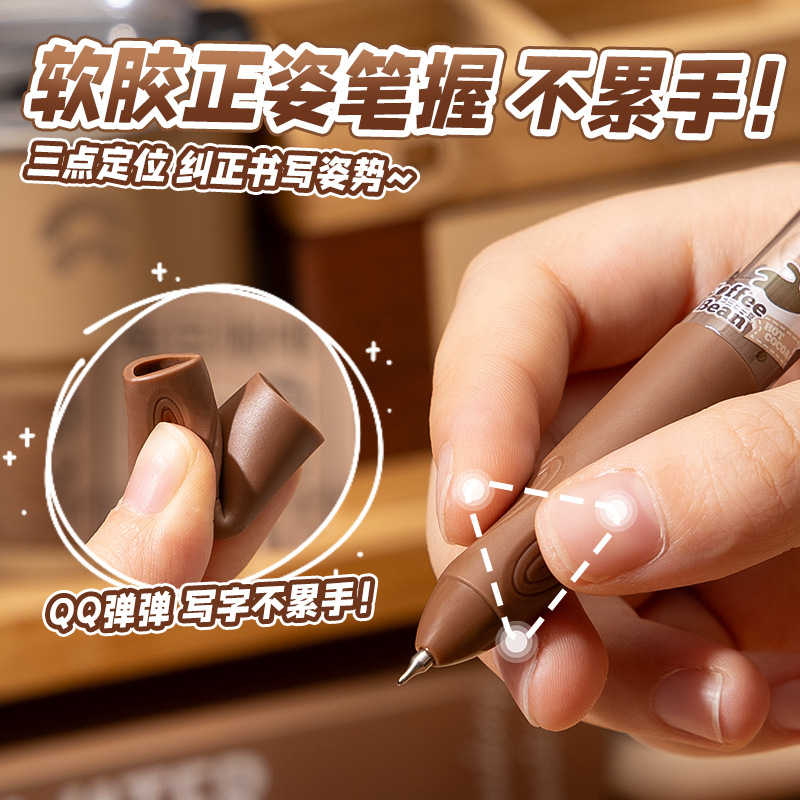 串串中性笔可爱高颜值软握刷题笔顺滑ST笔尖学生按动笔0.5mm黑笔 4支一盒