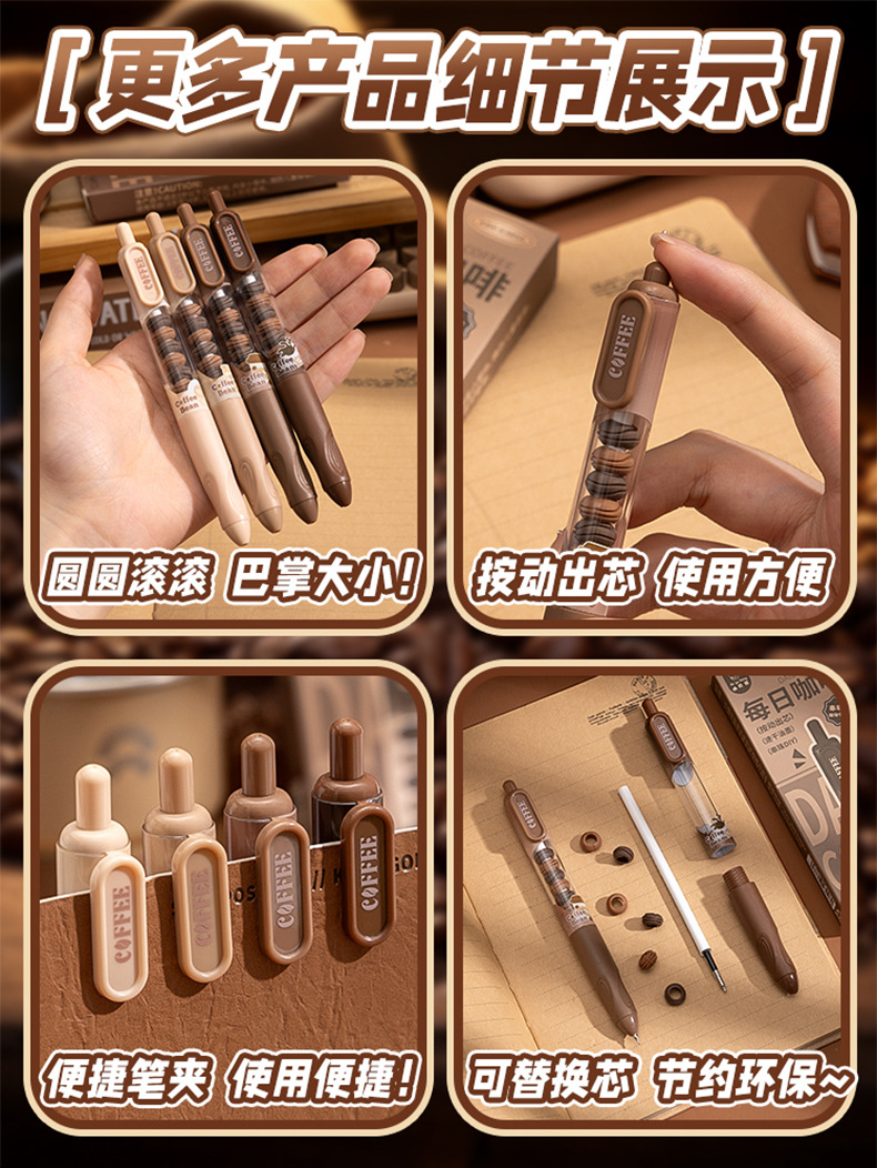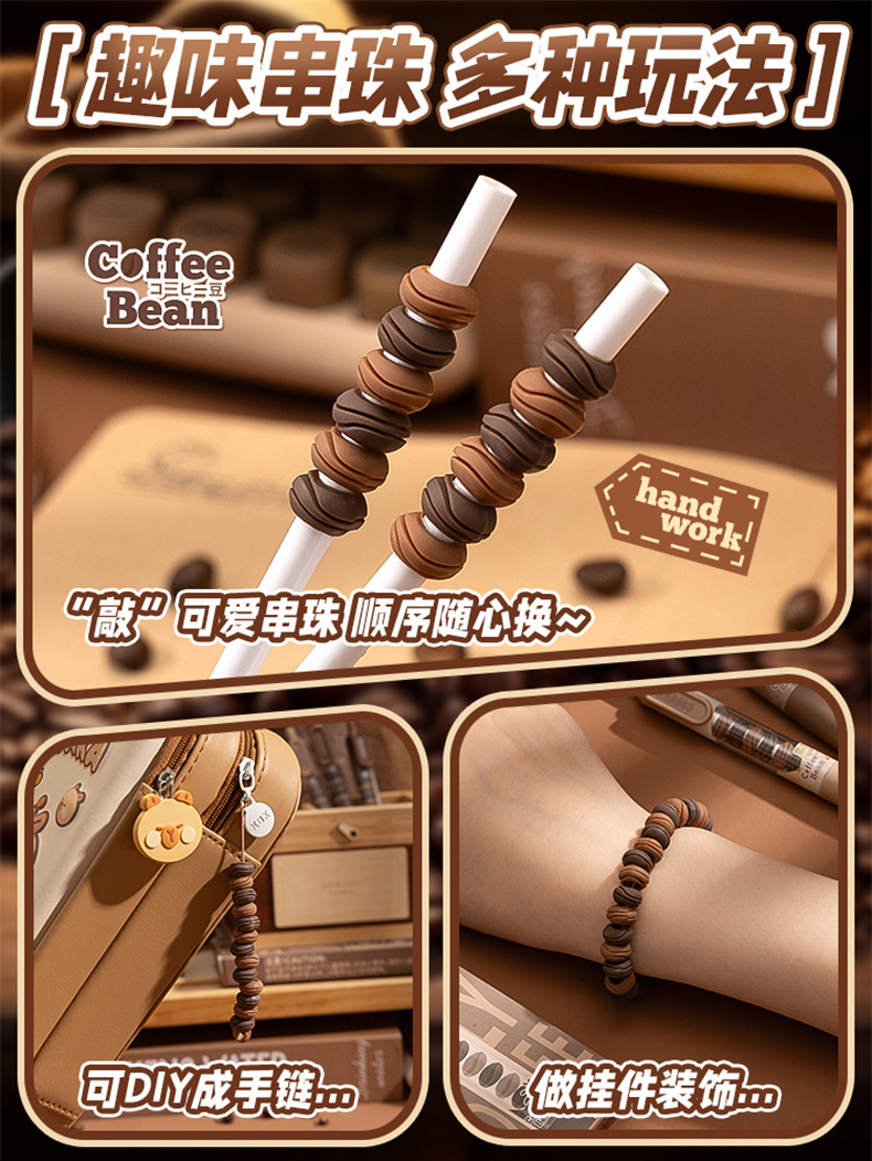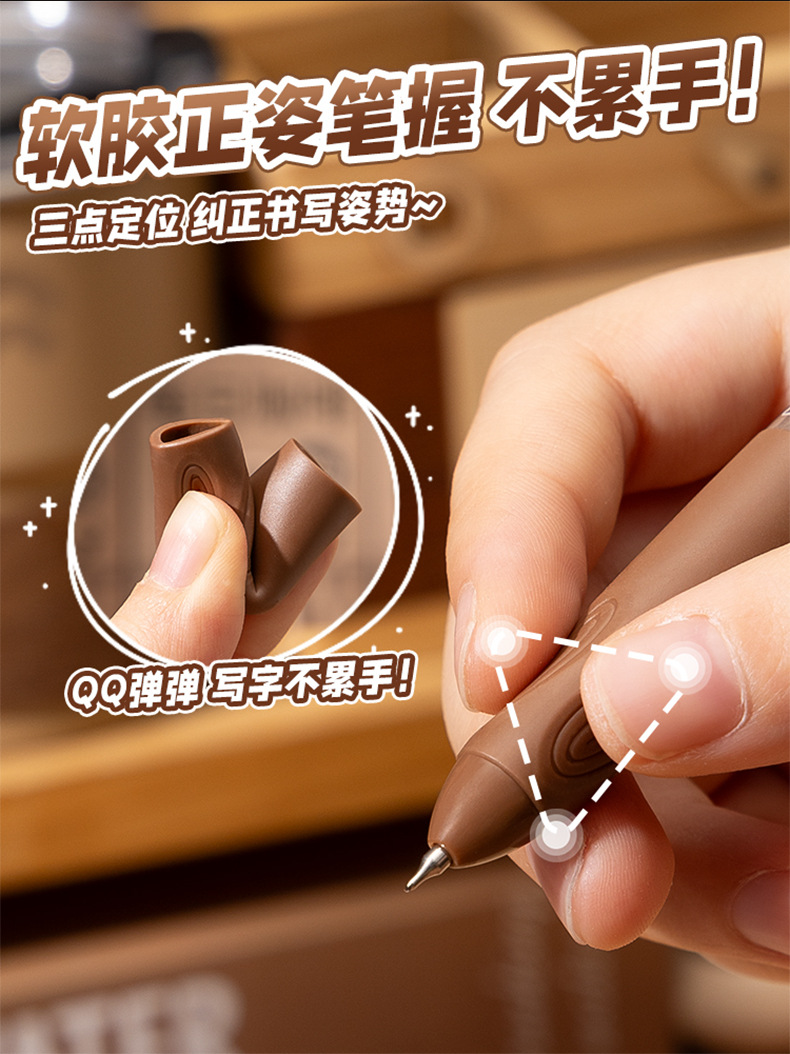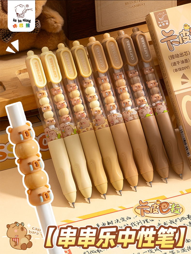串串中性笔可爱高颜值软握刷题笔顺滑ST笔尖学生按动笔0.5mm黑笔 4支一盒