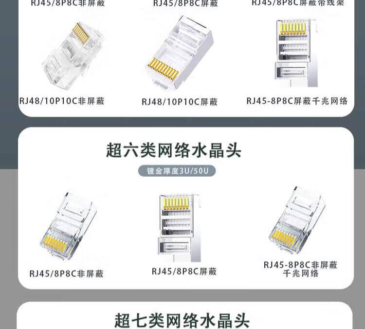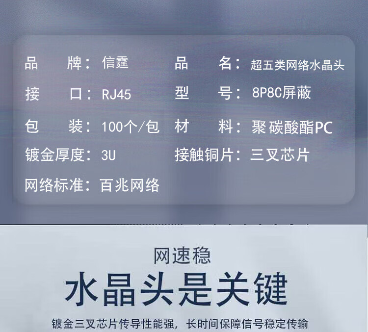 信霆 RJ458P8C10 超五类 3U屏蔽 水晶头 银色 100个/包