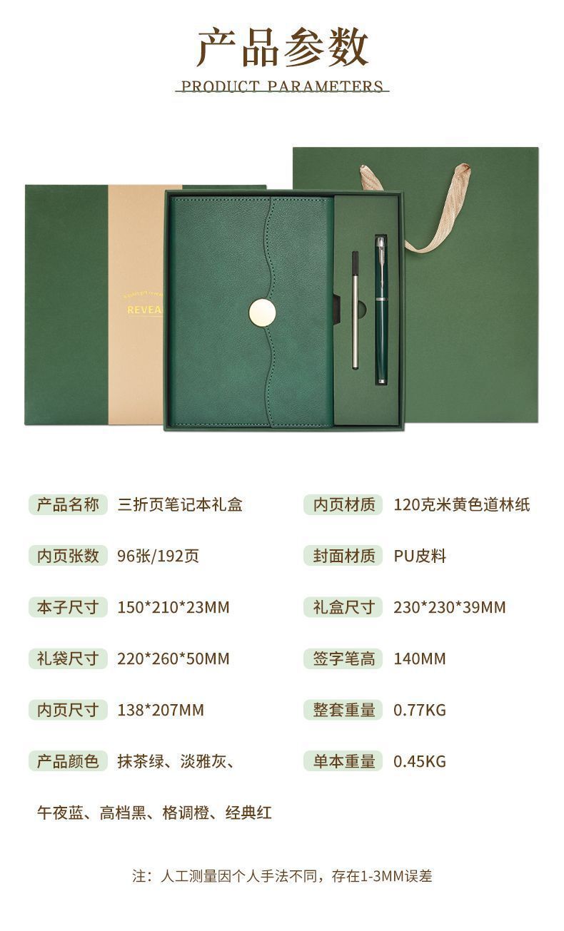新款a5三折笔记本套装商务办公记事本 A5粉色 1本