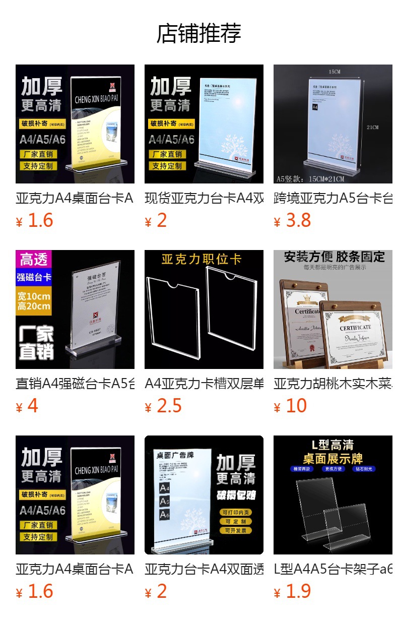 T型亚克力台牌 A6竖款100*150mm 5个装