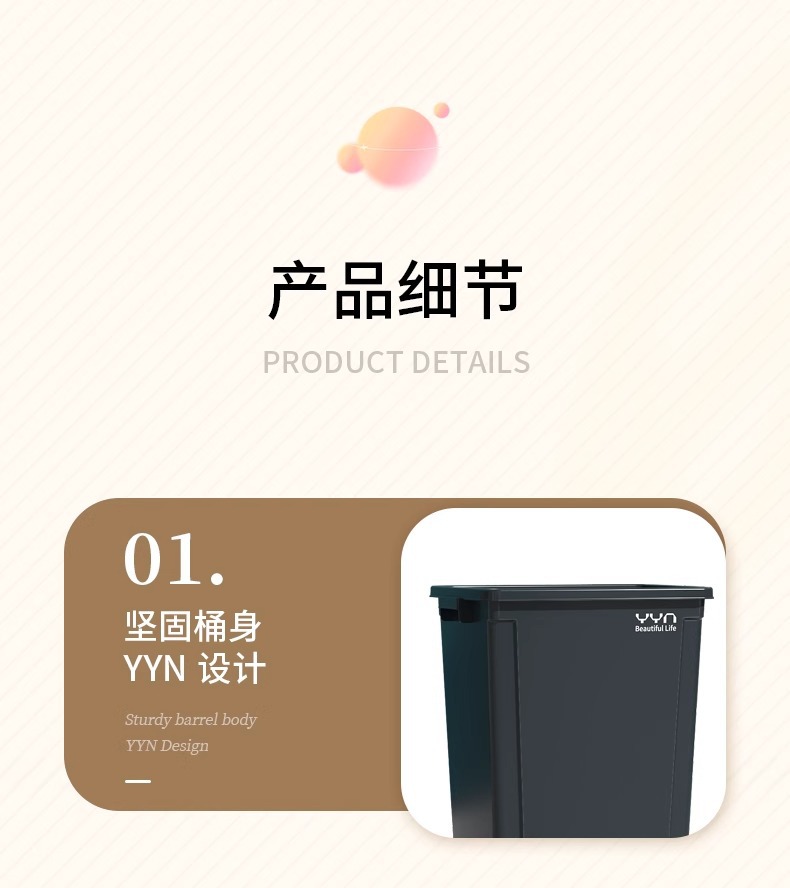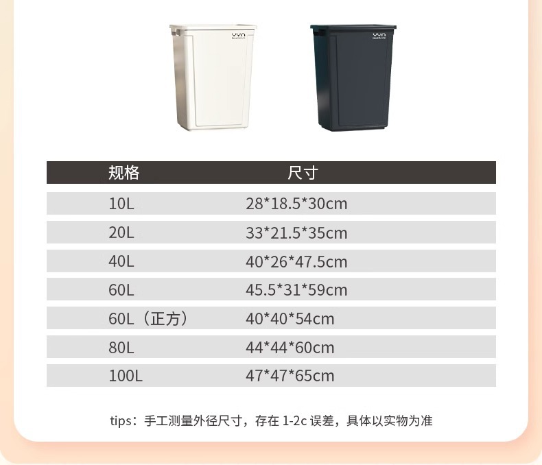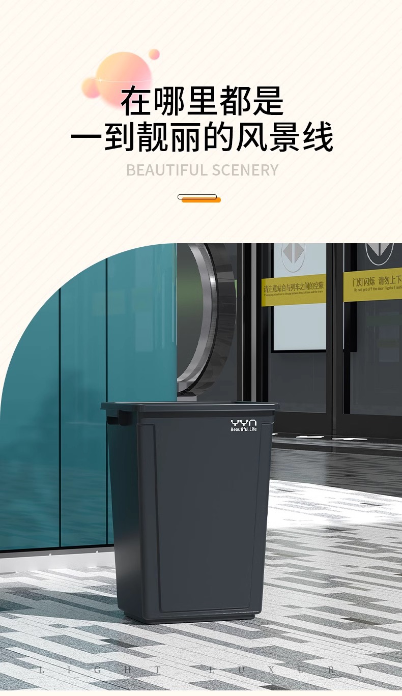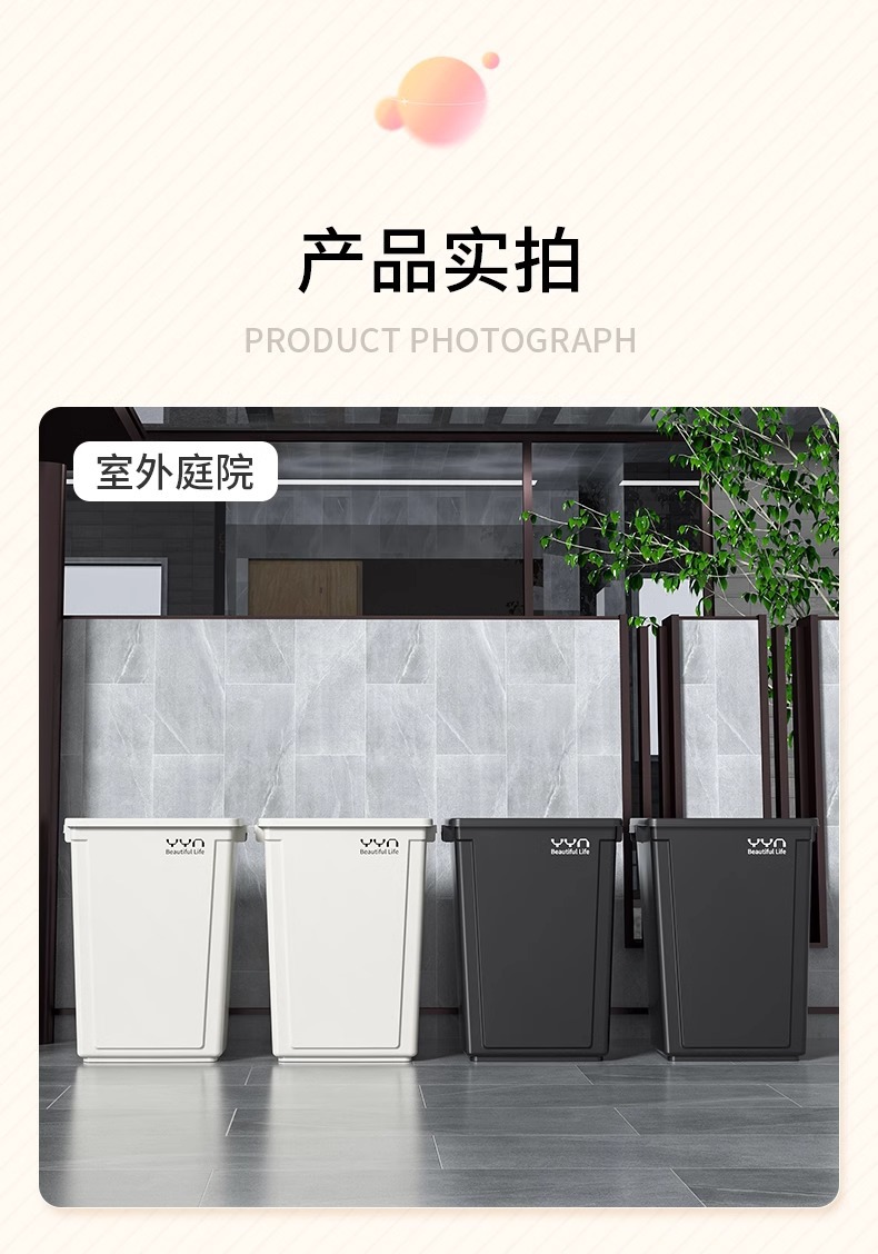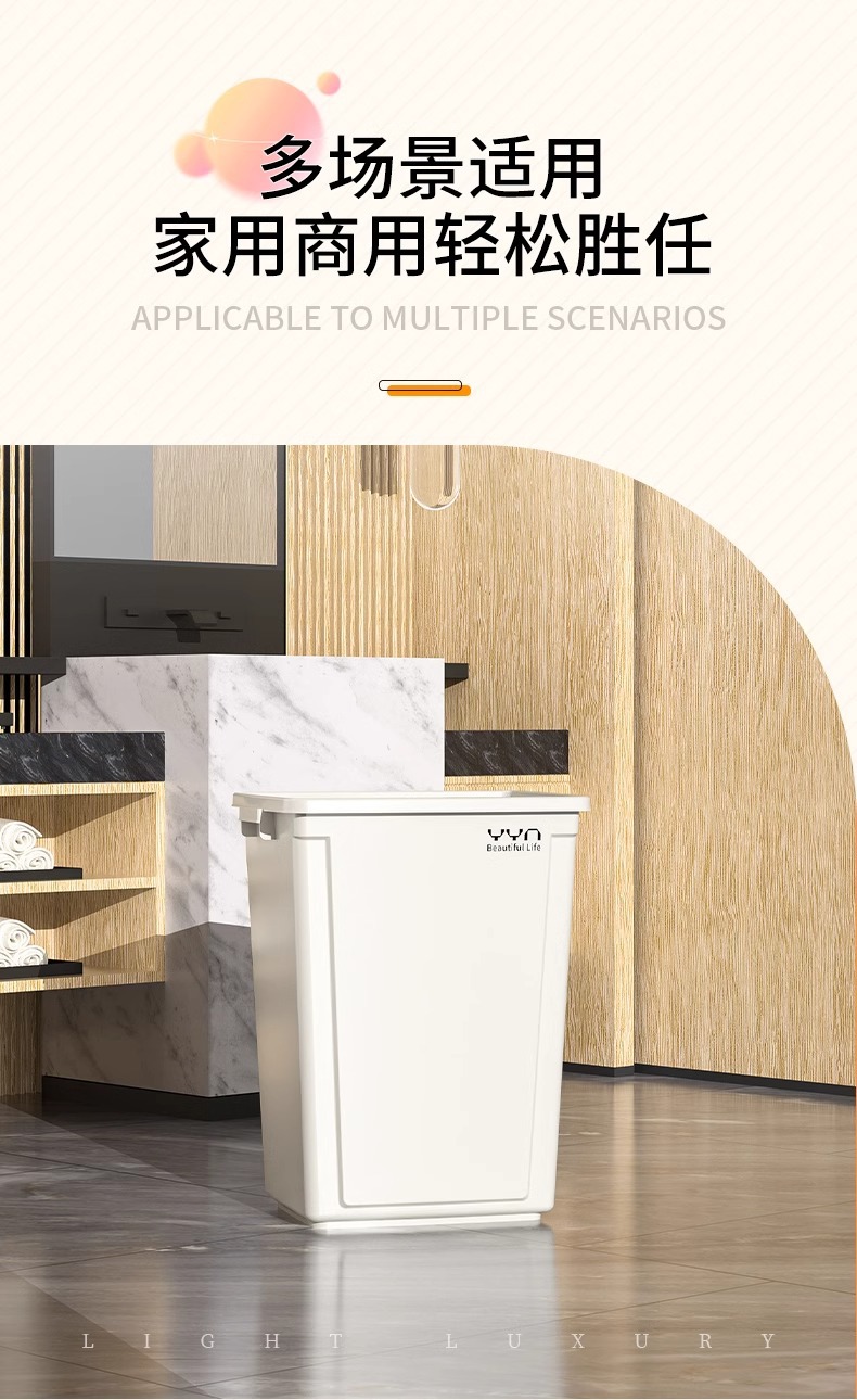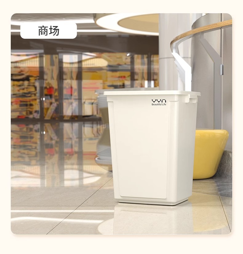 家用大号垃圾桶 奶白【50L】无盖正方 1个
