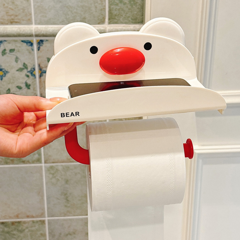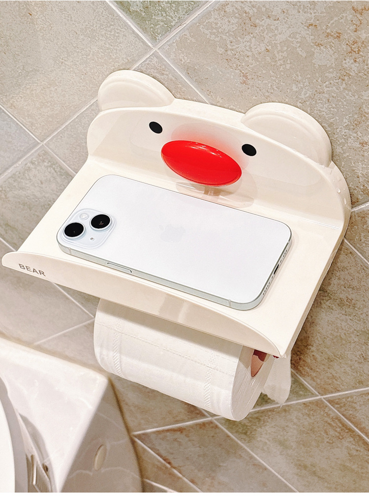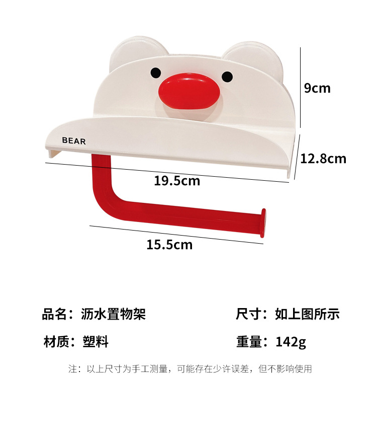 小熊吸盘纸巾架 奶油红1个