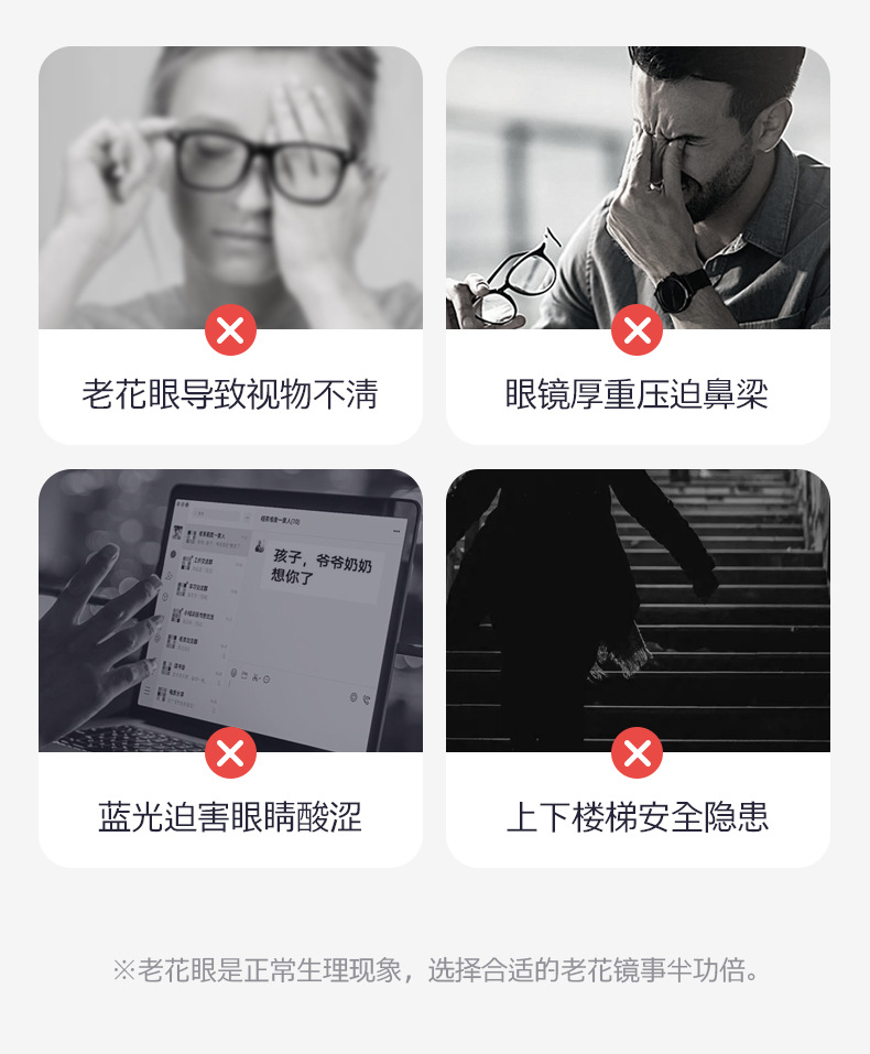 男女PC老花眼镜 200度