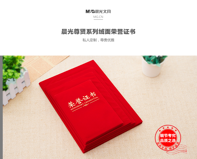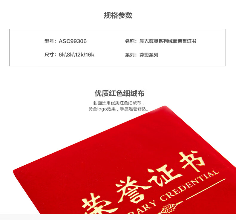 晨光荣誉证书尊贤绒面8K ASC99307(1本)