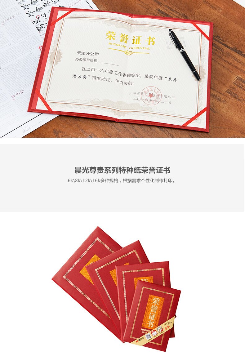 晨光荣誉证书尊贵特种纸8K ASC99314(1本)