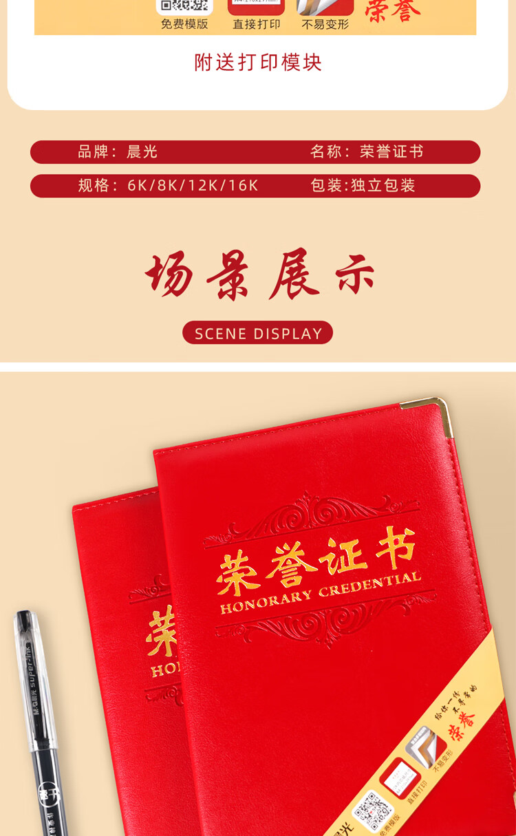 晨光荣誉证书尊贵特种纸16K ASC99316(1本)
