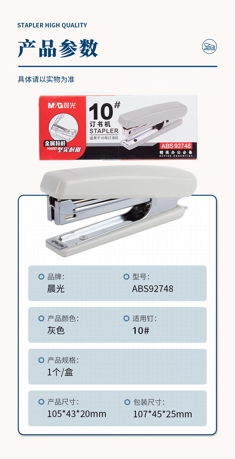 晨光订书机10号(灰)ABS92748(1个)